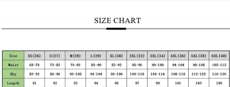 Size: XS(26),S(27),M(28),L(29),XL(30),2XL(32),3XL(34),4XL(36),5XL(50),6XL(40) )