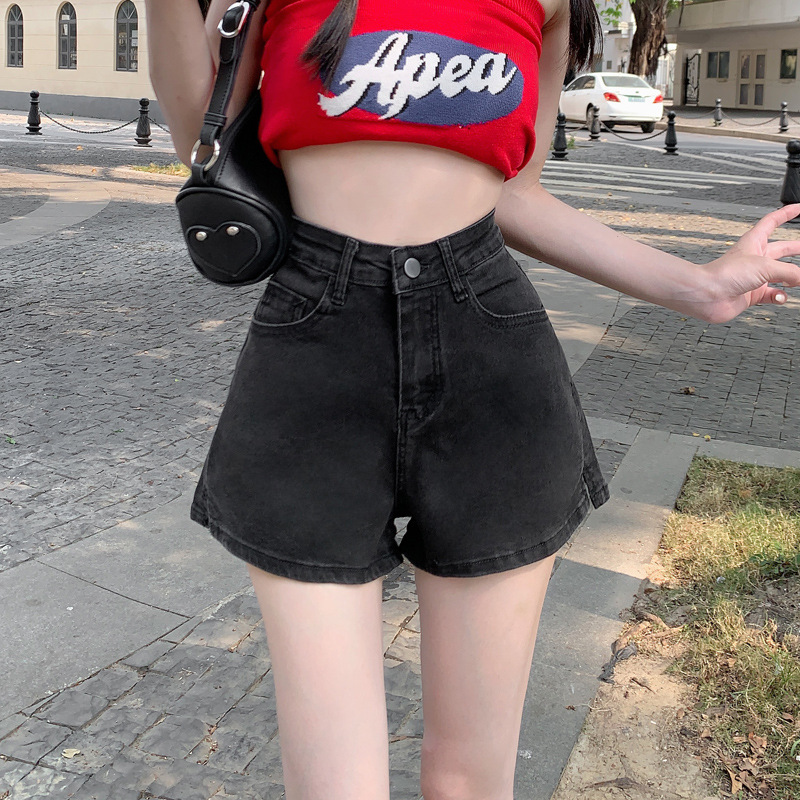 Women's High Waist Slimming A- Line Plus Size Denim Shorts
