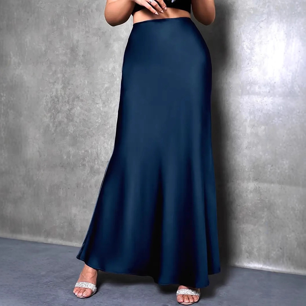 Women's High Waist Solid Color Extra Long Satin Mermaid Skirt