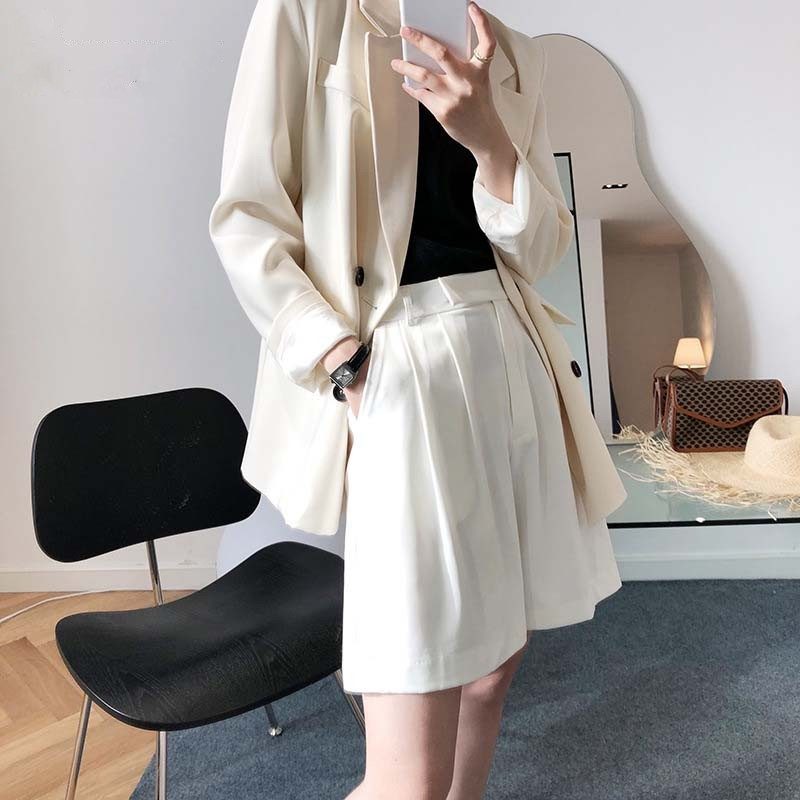 Women's High-Waist Straight Casual Wide-Leg White Suit Shorts
