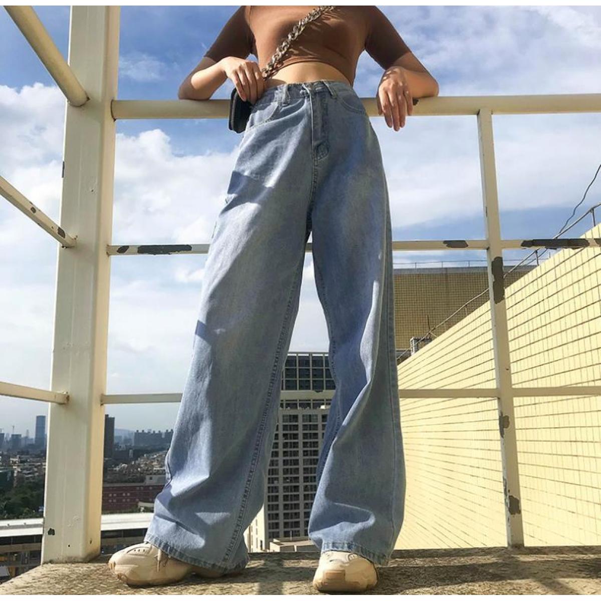 Women's High-waist Straight-leg Denim Wide-leg Pants