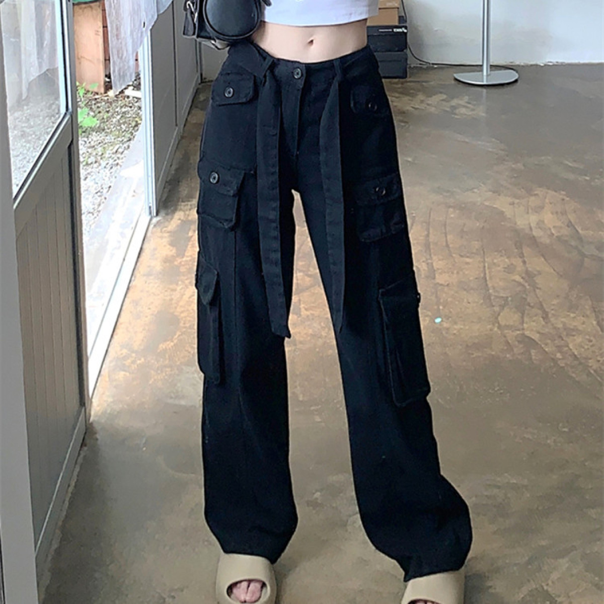 Women's High Waist Straight Pants Workwear Black Slim