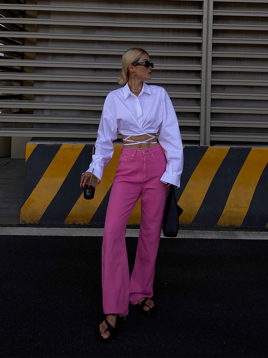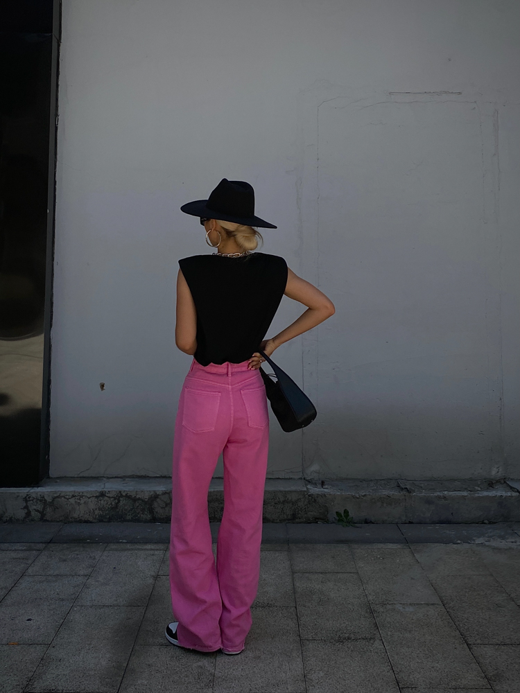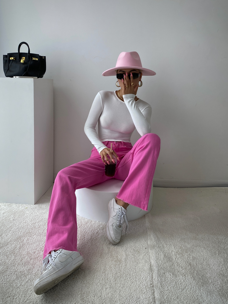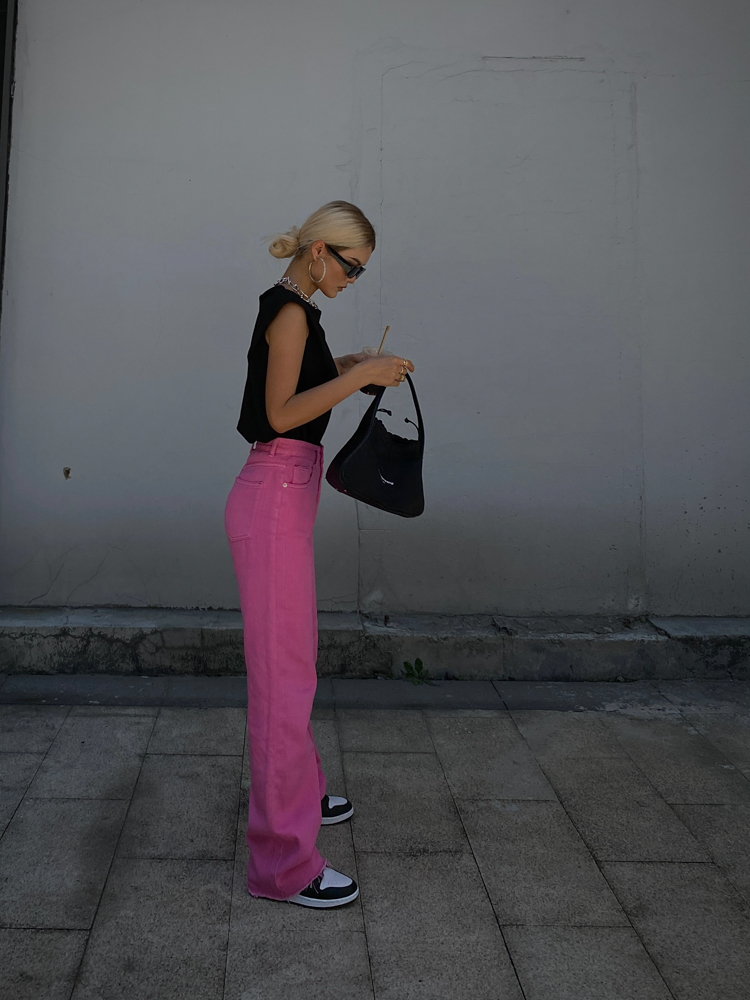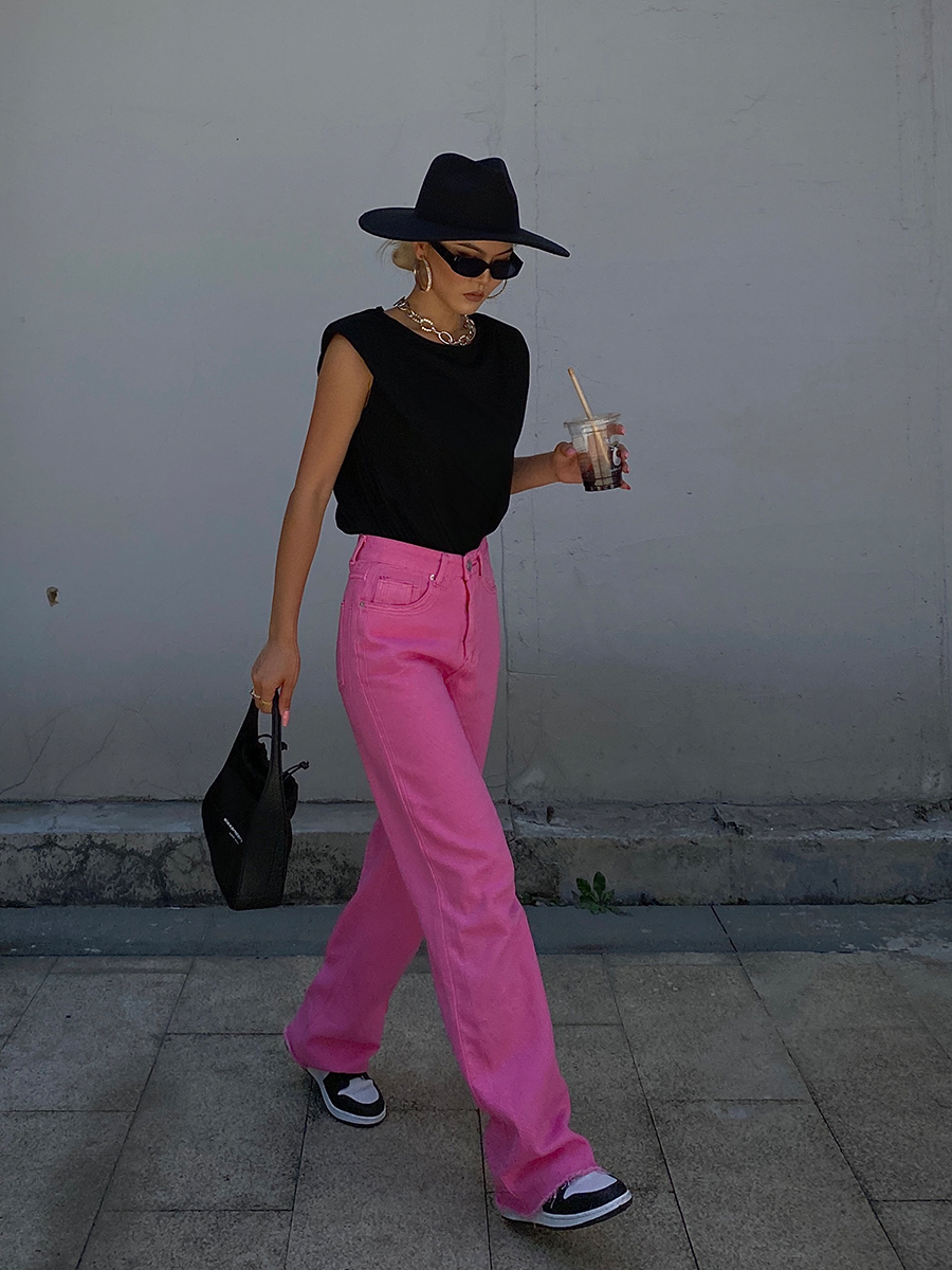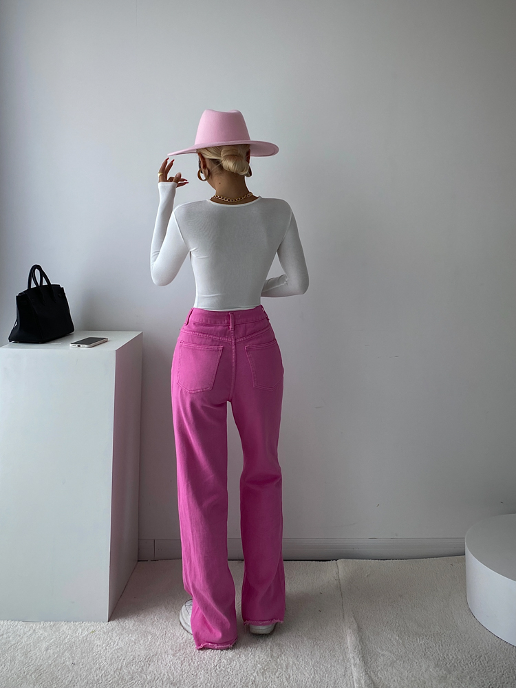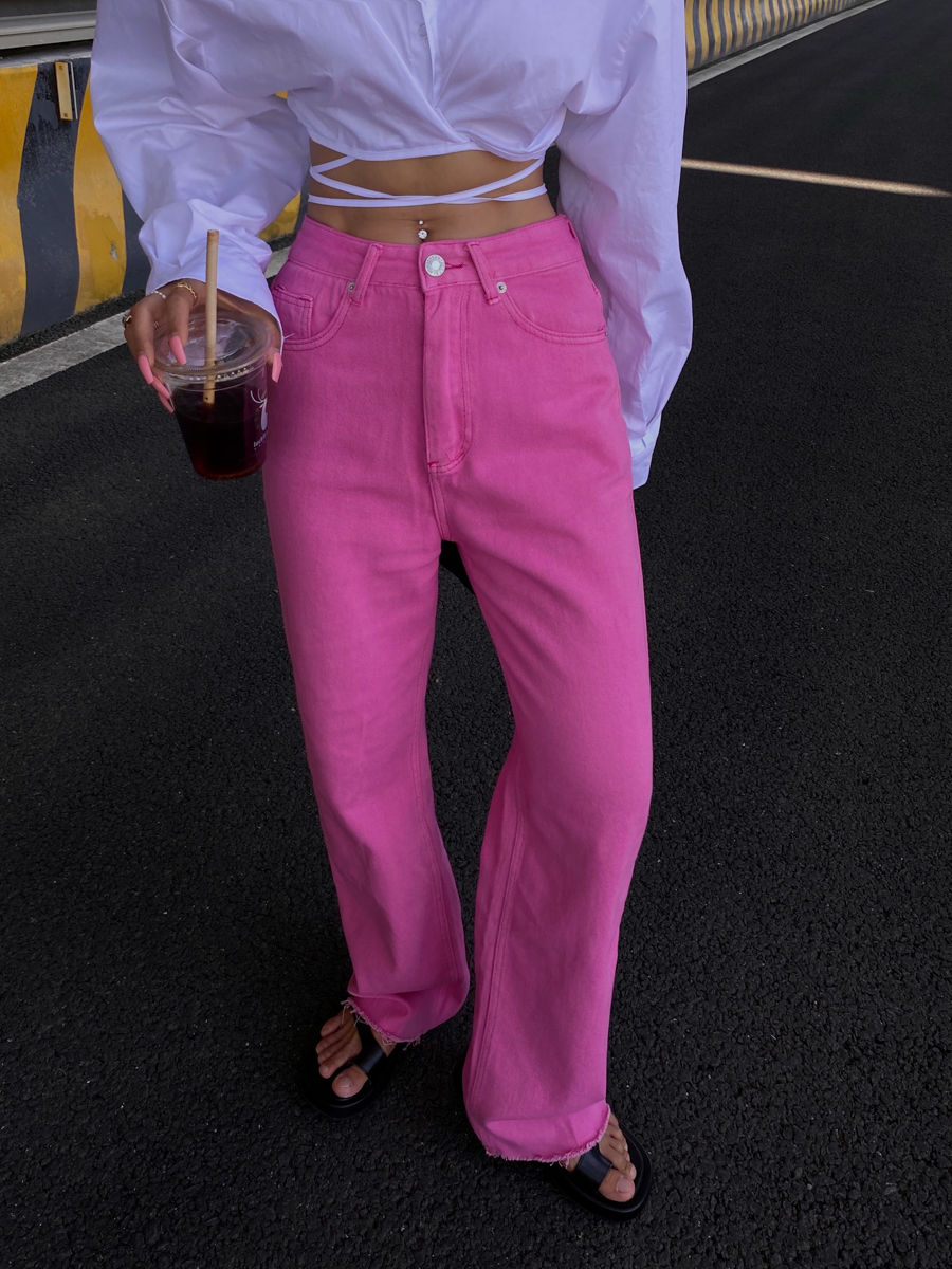 Women's High Waist Straight Wide Leg Slim Rose Red Jeans
