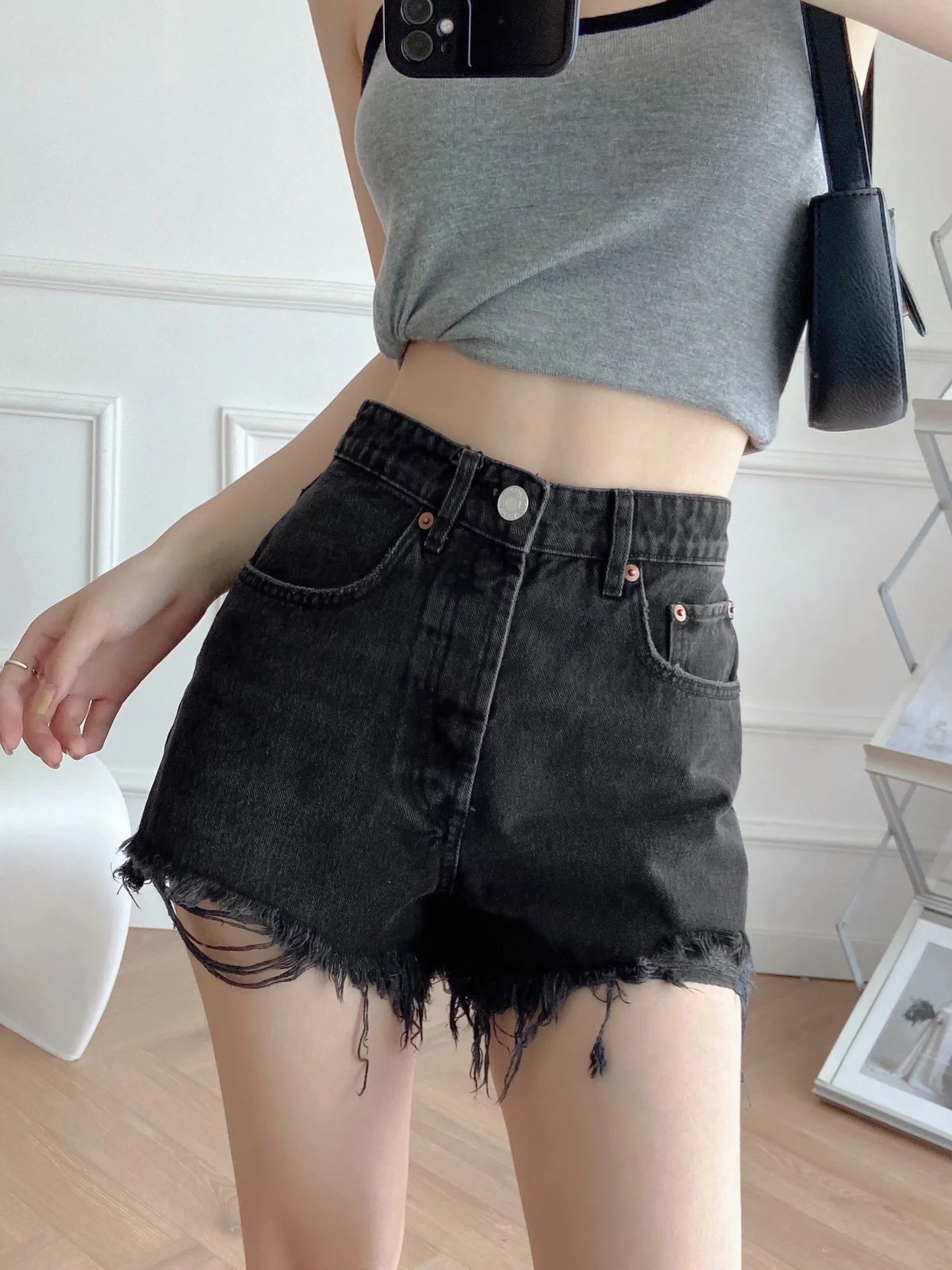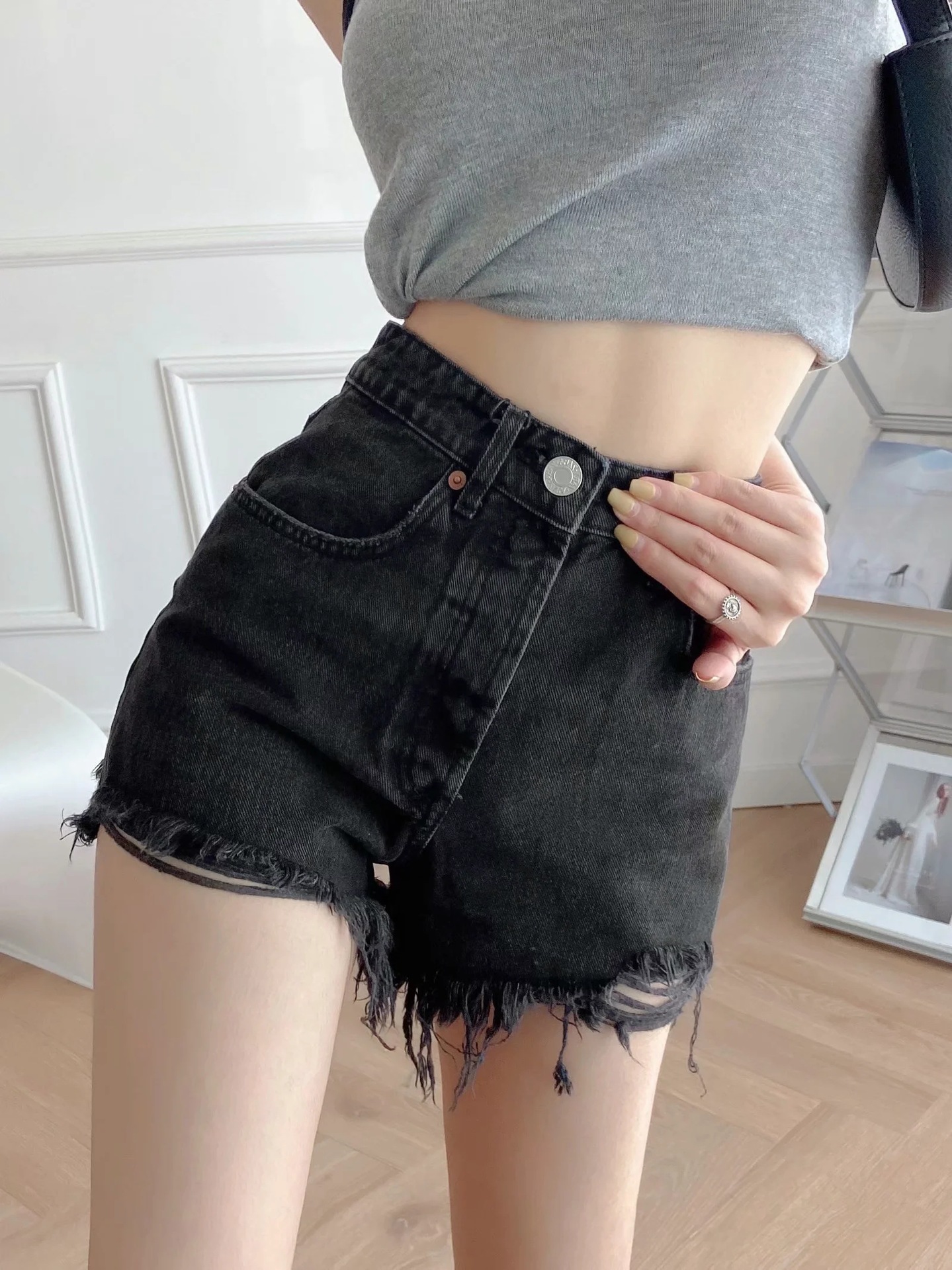 Women's High Waist Wide Legs Irregular Ripped Raw Edge Denim Shorts