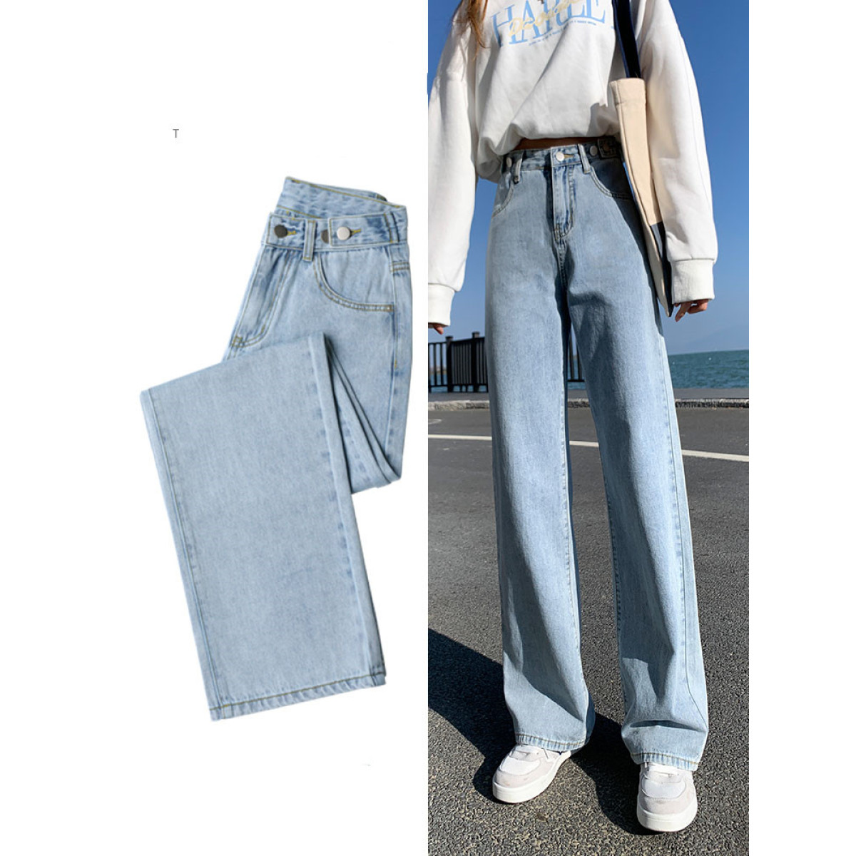 Color classification: light blue nine-point pants, light blue trousers
