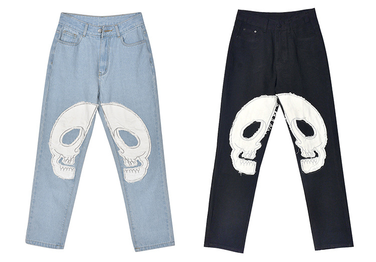 Women's High-waisted Retro Skull Printed Jeans