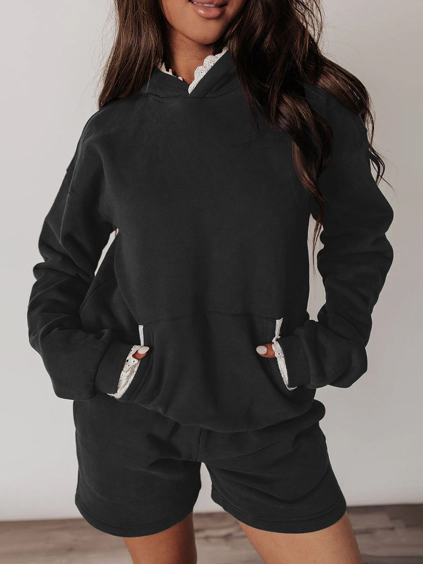 Women's Hoodie And High-waisted Shorts Casual Two-piece Set