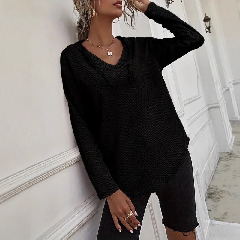 Women's Hoodie With Drawstrings V-neck Plus Size Sweater