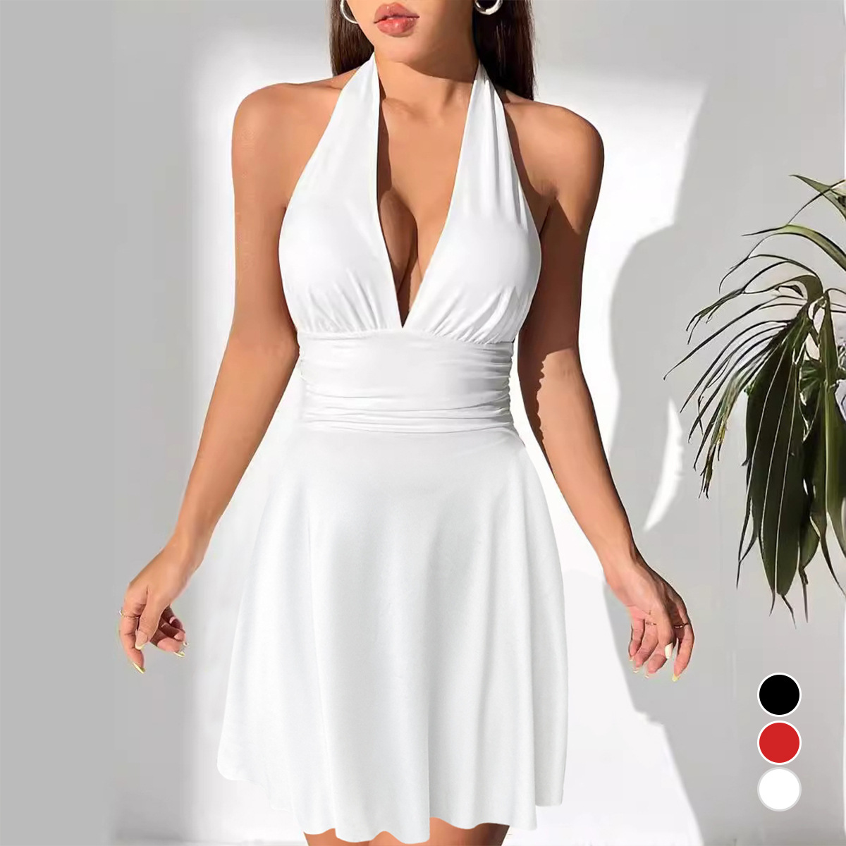 Popular elements: no back pleated shoulder strap