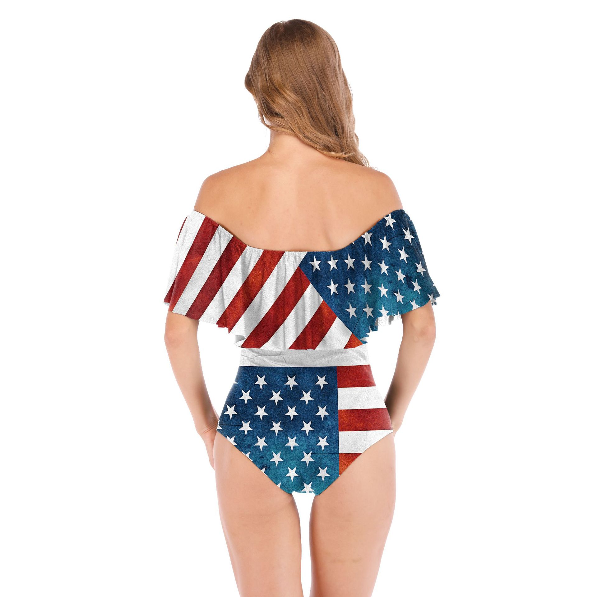 Women's Independent 3D Digital Printing Off-neck Ruffled One-piece Swimsuit