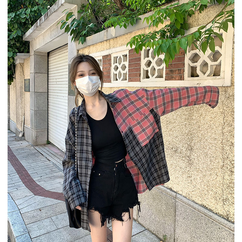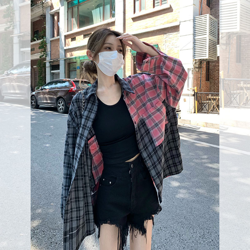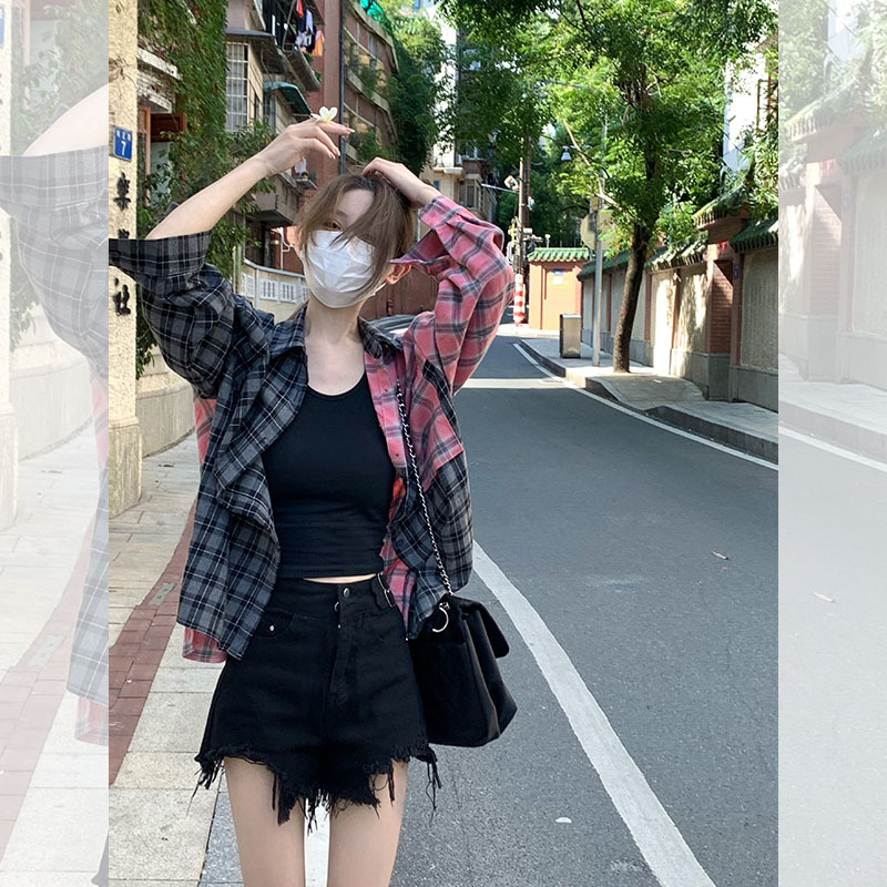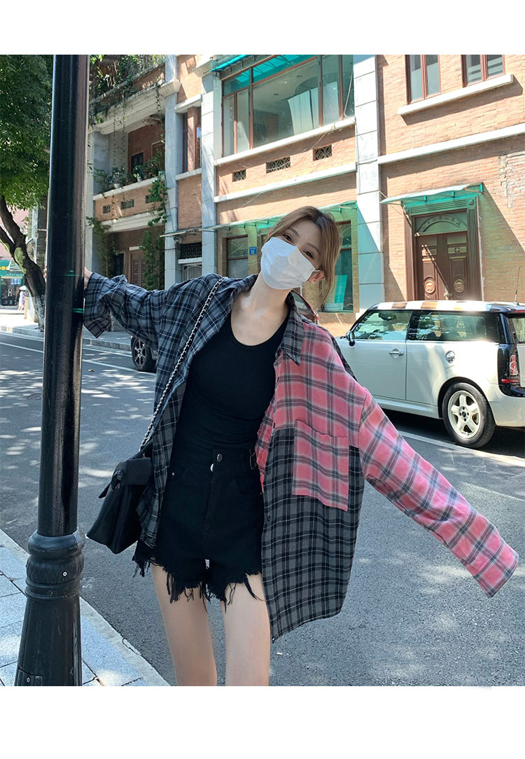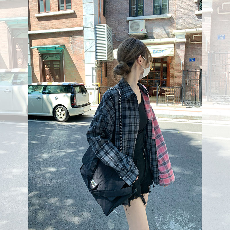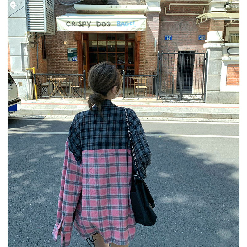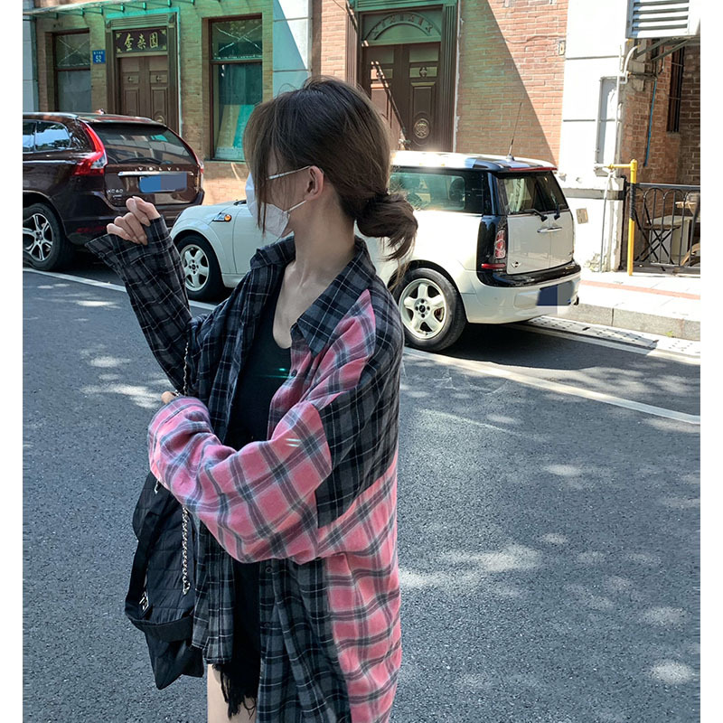 Color: pink Gray lattice shirt