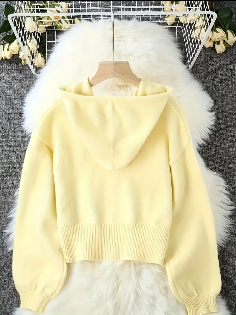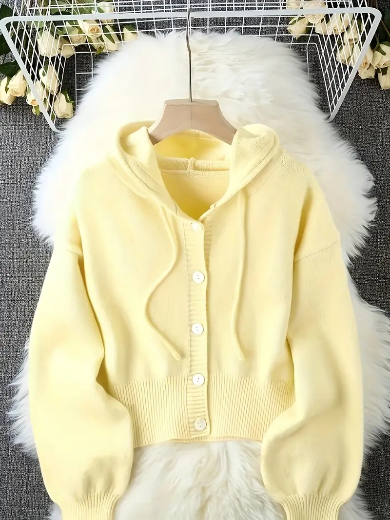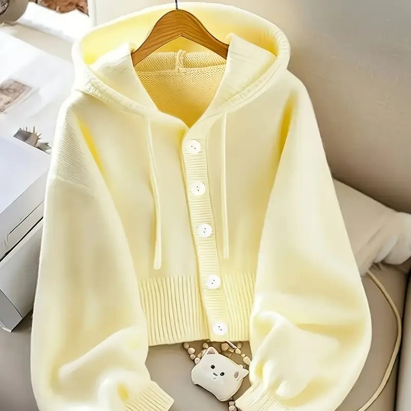Women's Ivory Yellow Oversized Hooded Cardigan