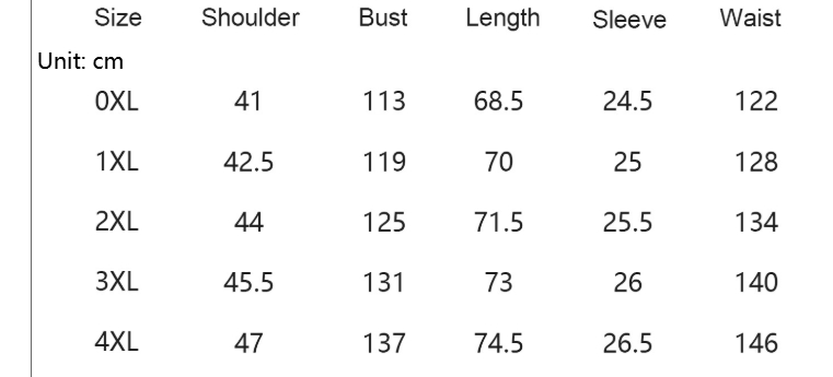 Sizes: 0XL, 1XL, 2XL, 3XL, 4XL