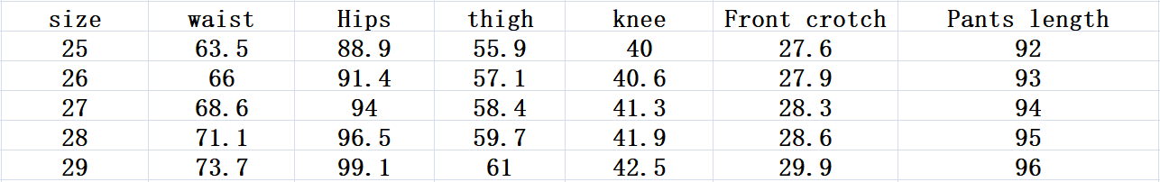 Size: 25, 26, 27, 28, 29