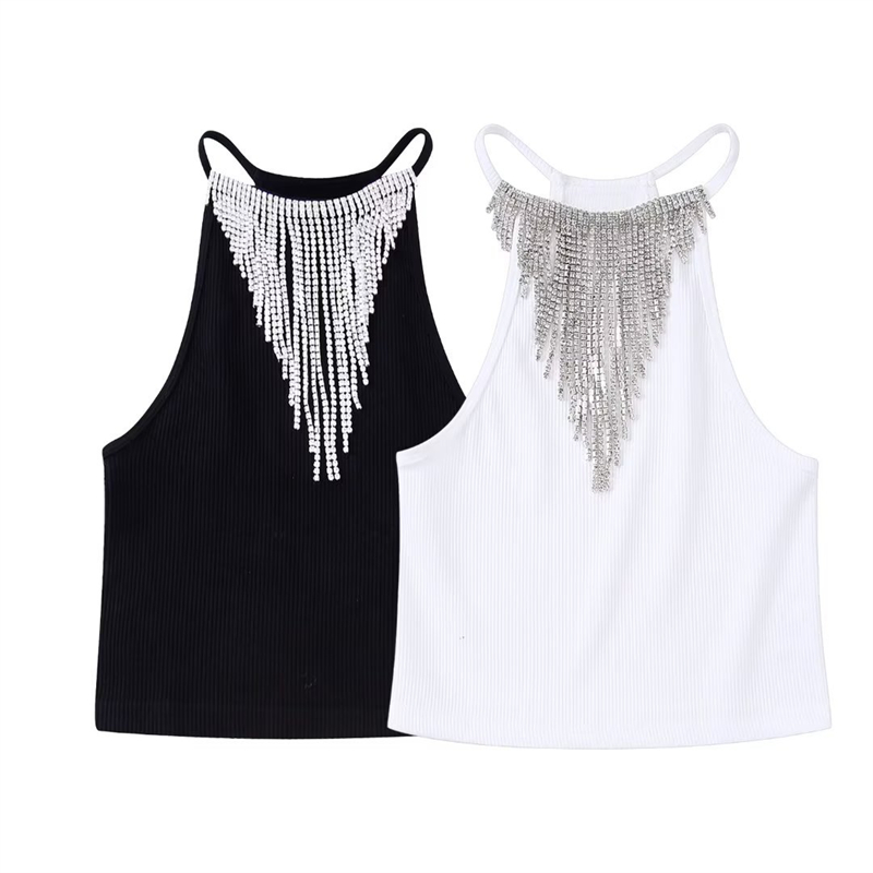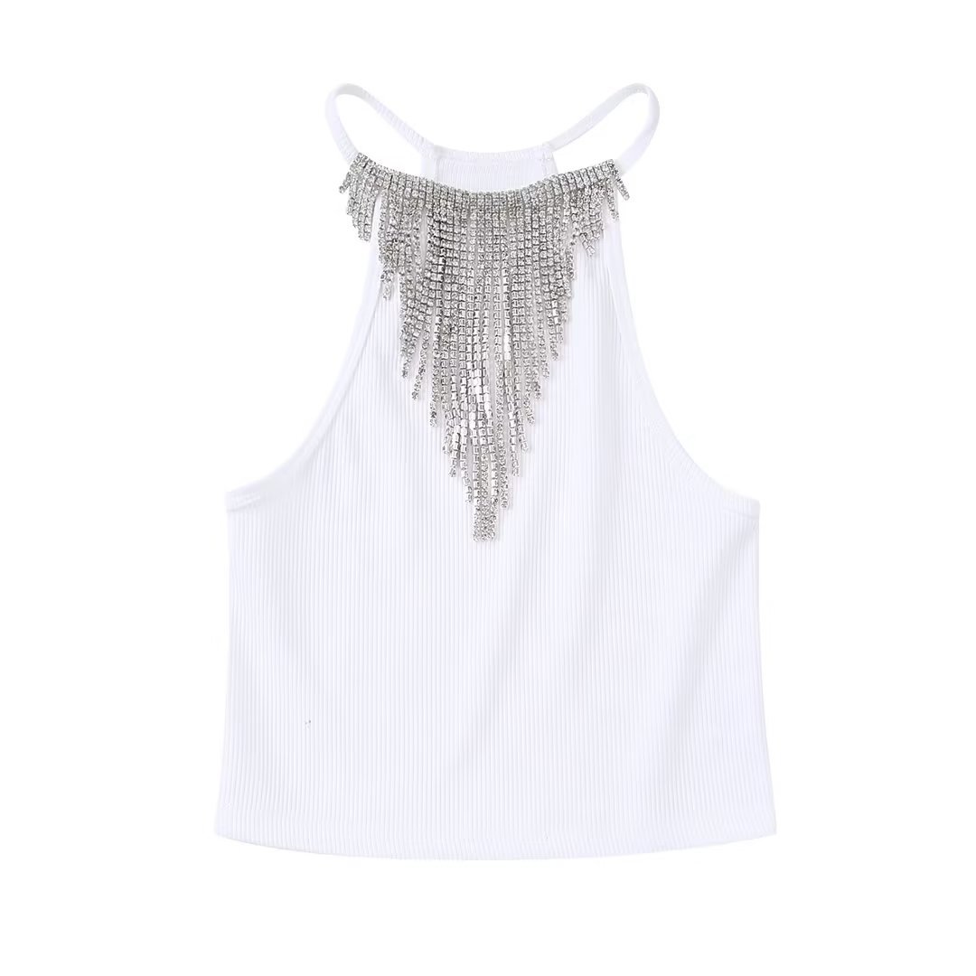 Color: 221310 black, sleeveless rhinestone vest, 221310 white sleeveless rhinestone vest