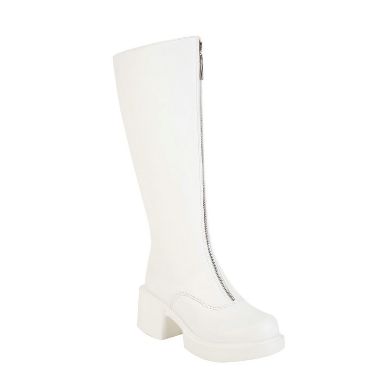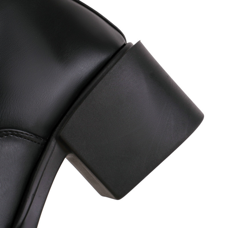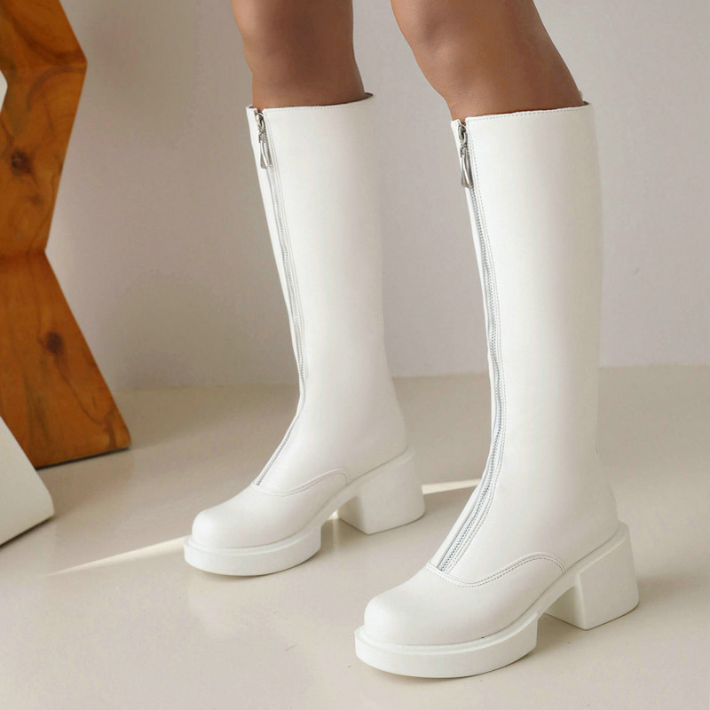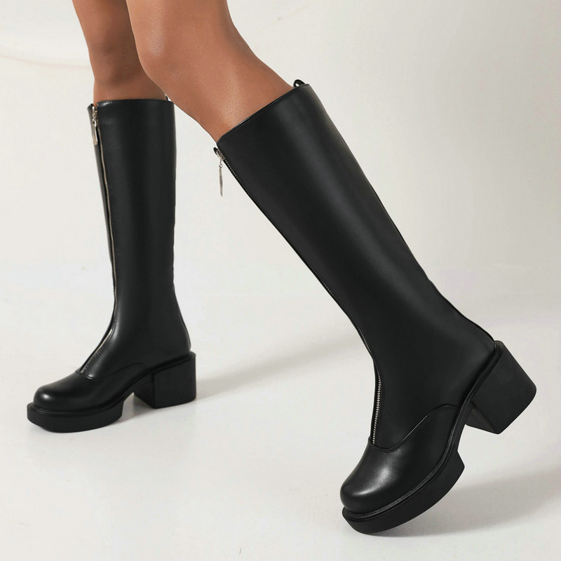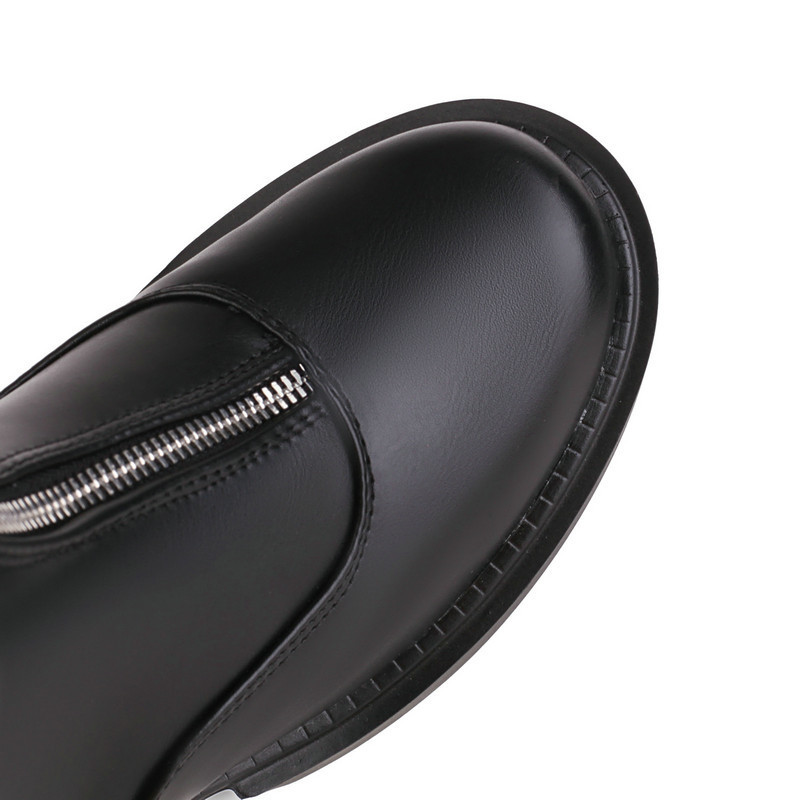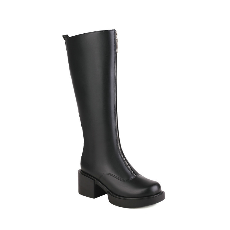 Women's Knight Martin Boots Round Toe Chunky Heel Front Zipper