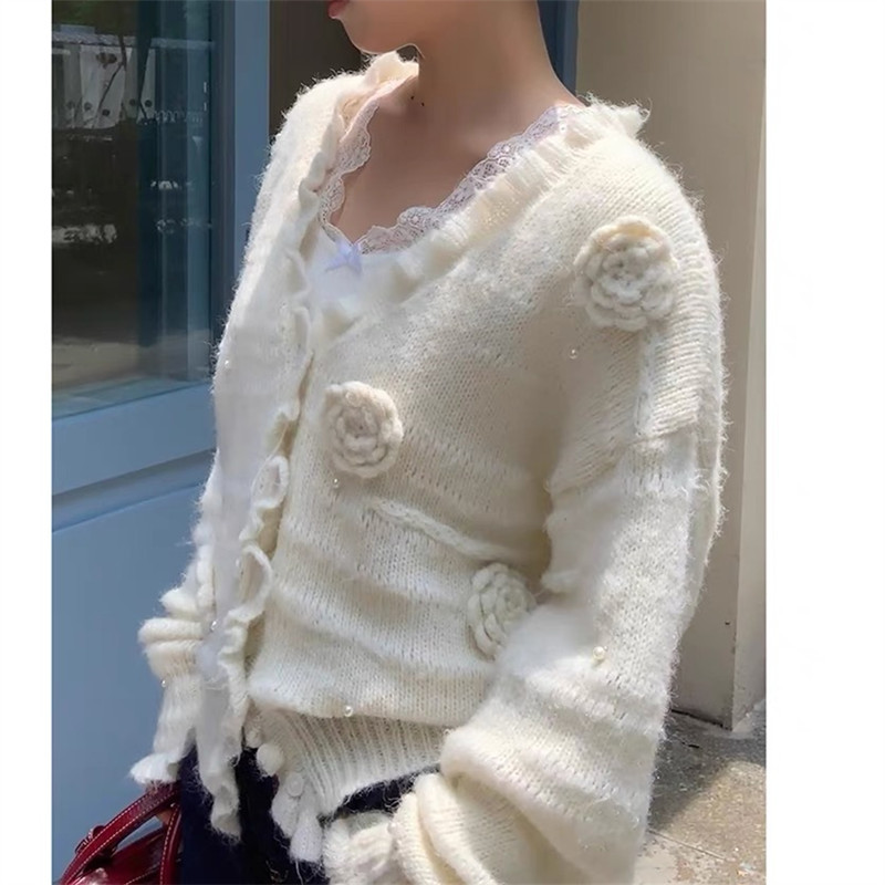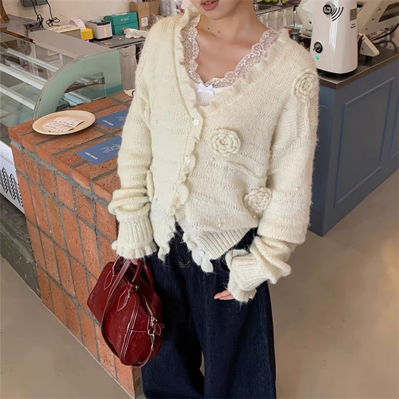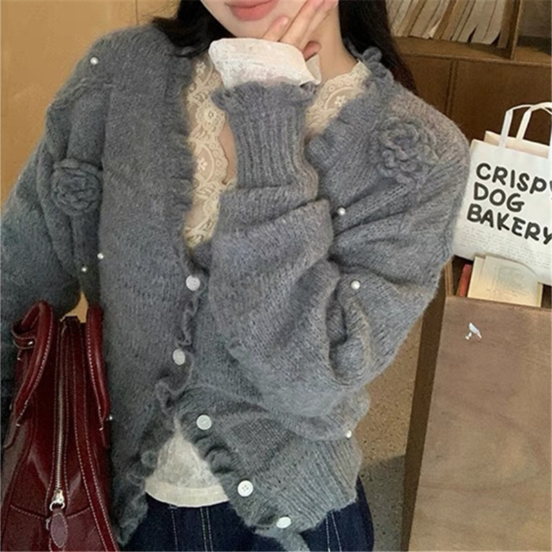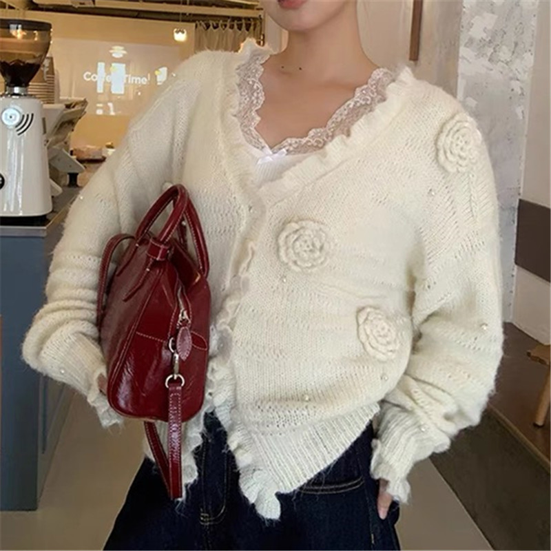 Color: beige cardigan, gray cardigan, beige lace sweater