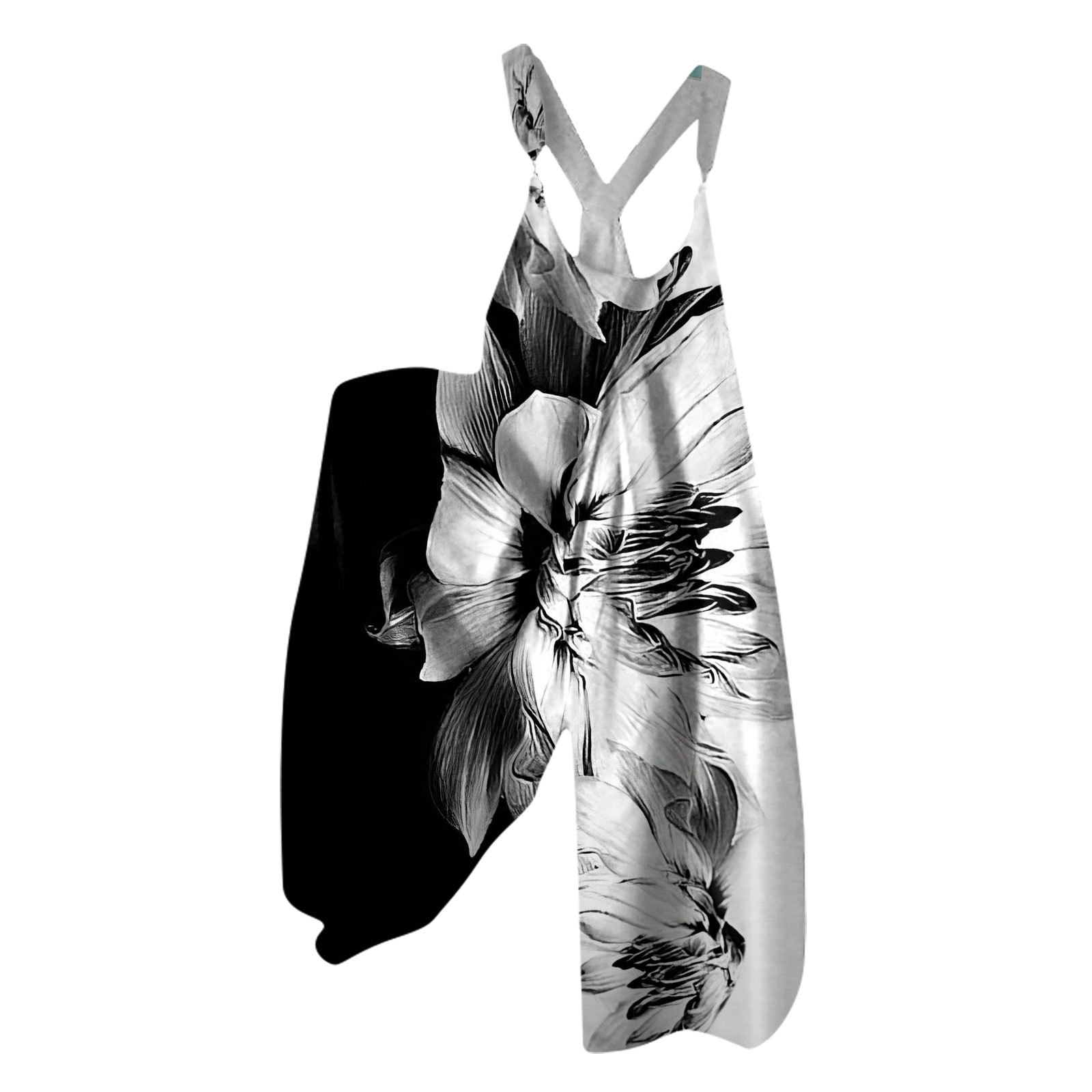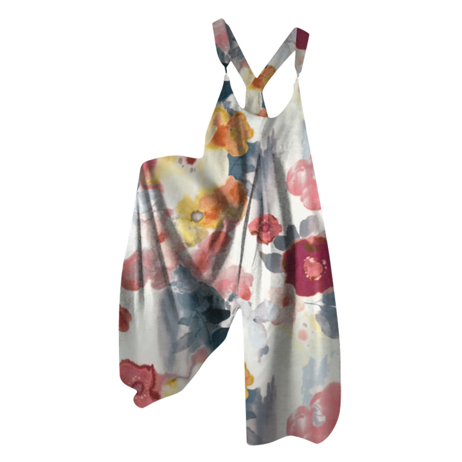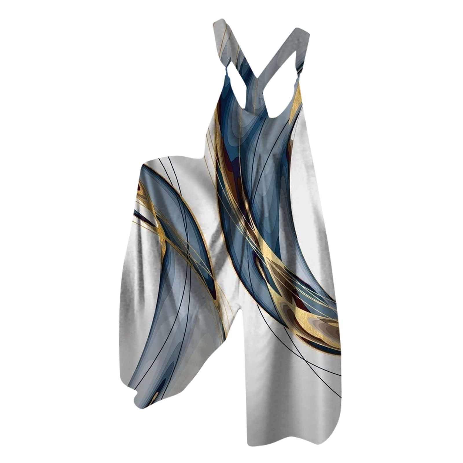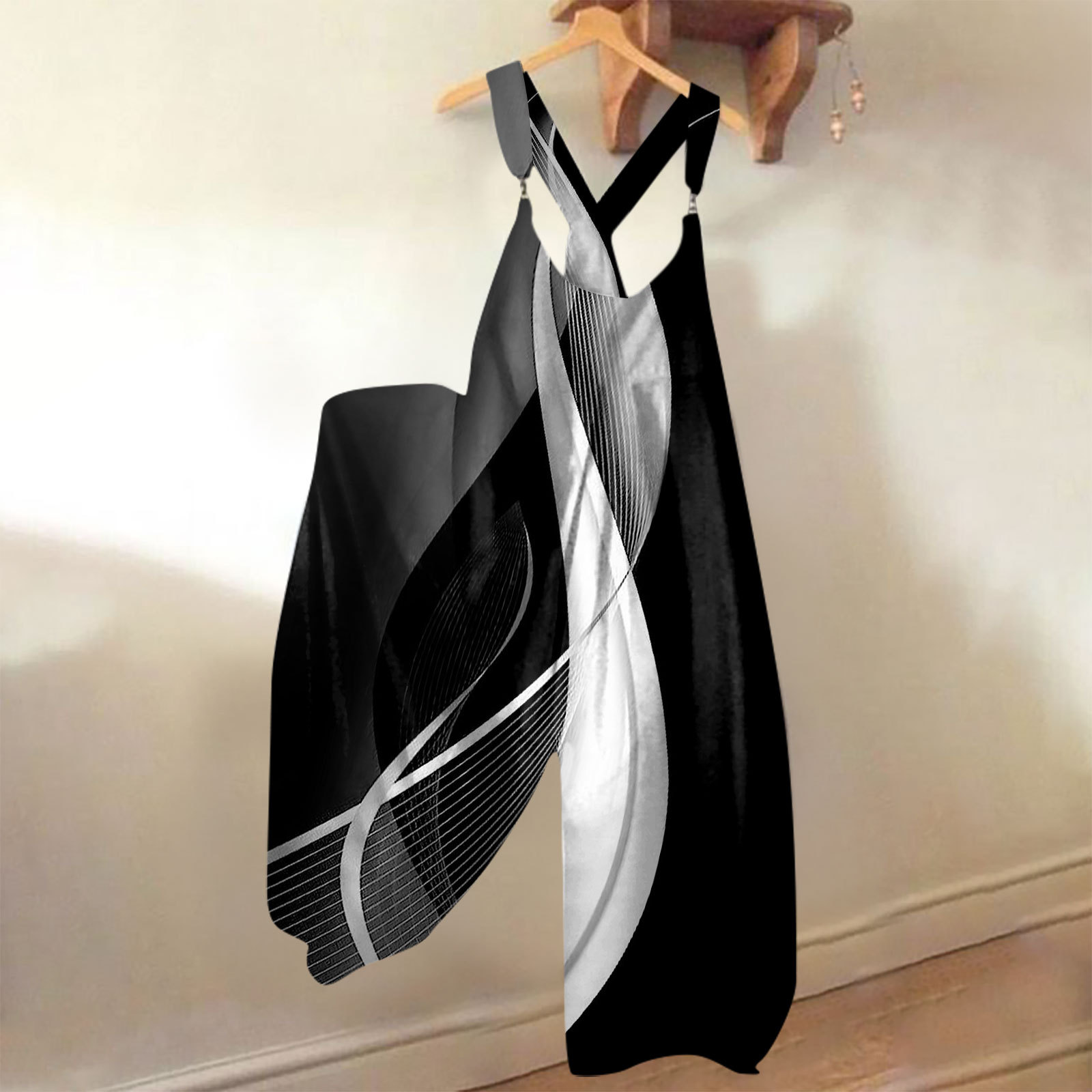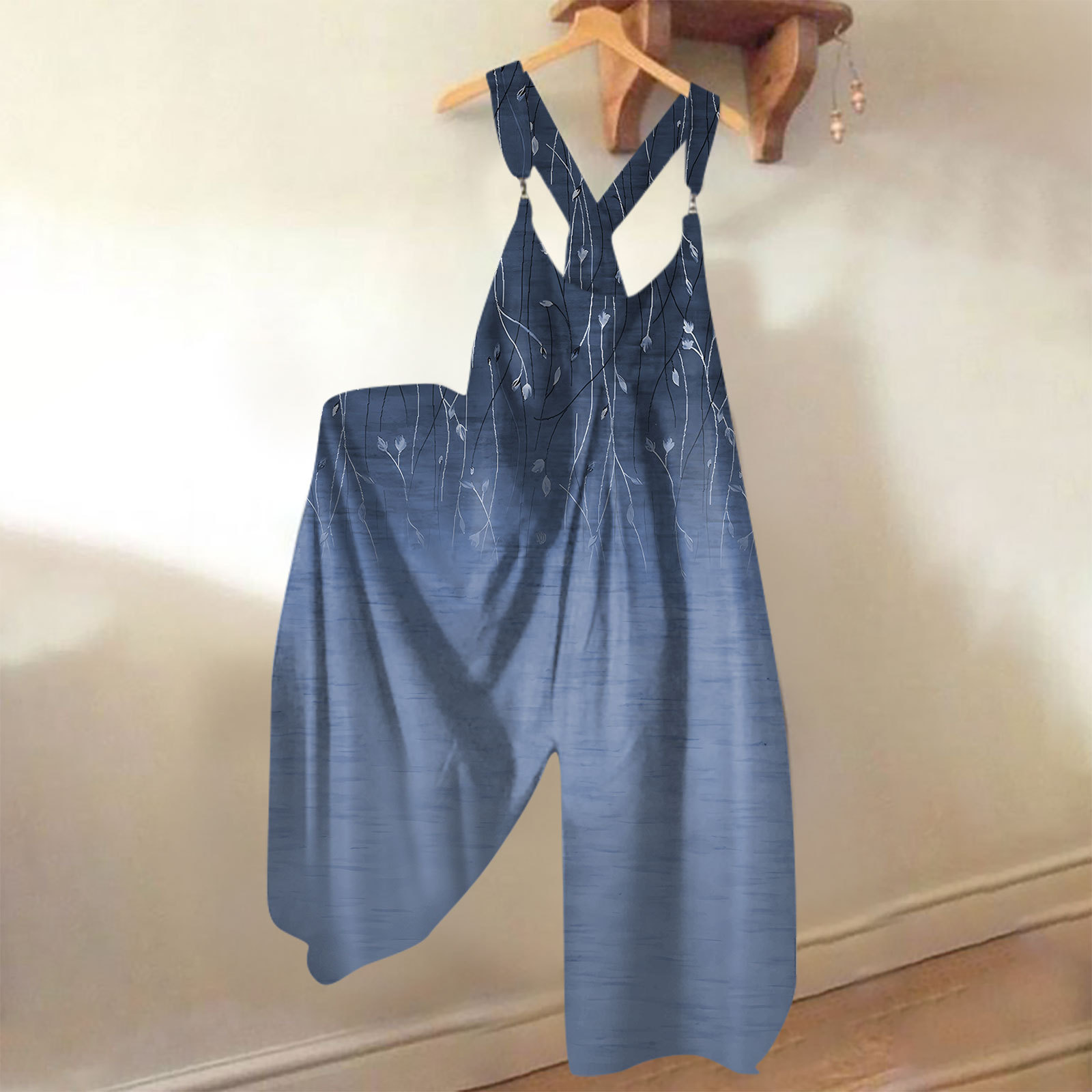 Women's Knitted Pocket Printed Loose Casual Jumpsuit