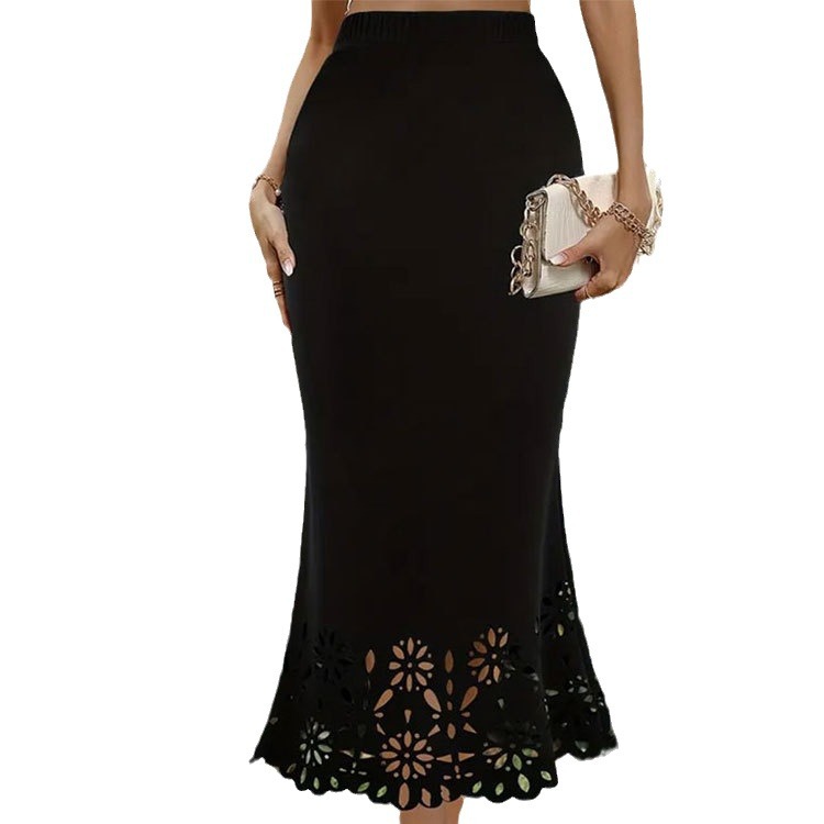 Women's Knitted Sheath Hollow-out Floral Skirt