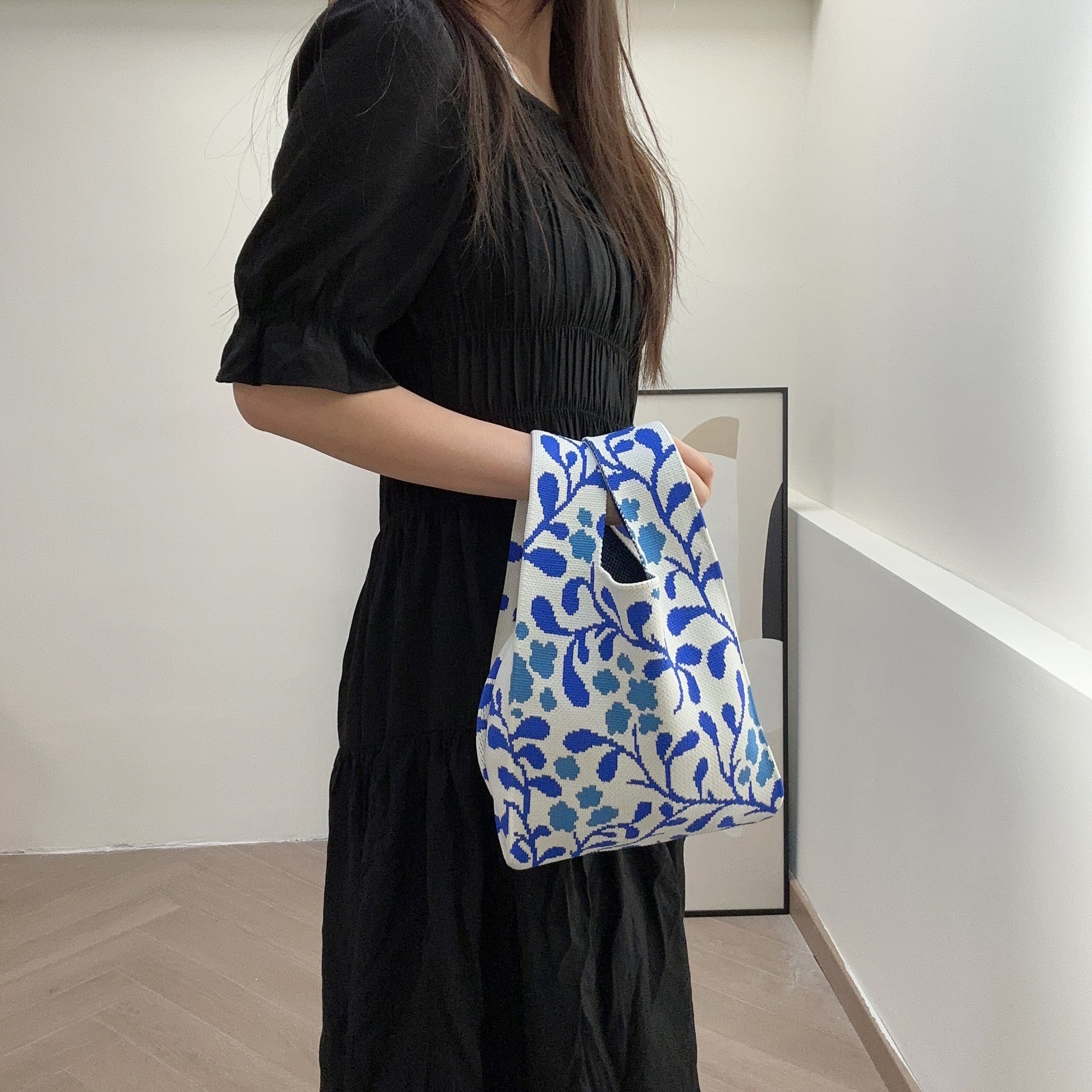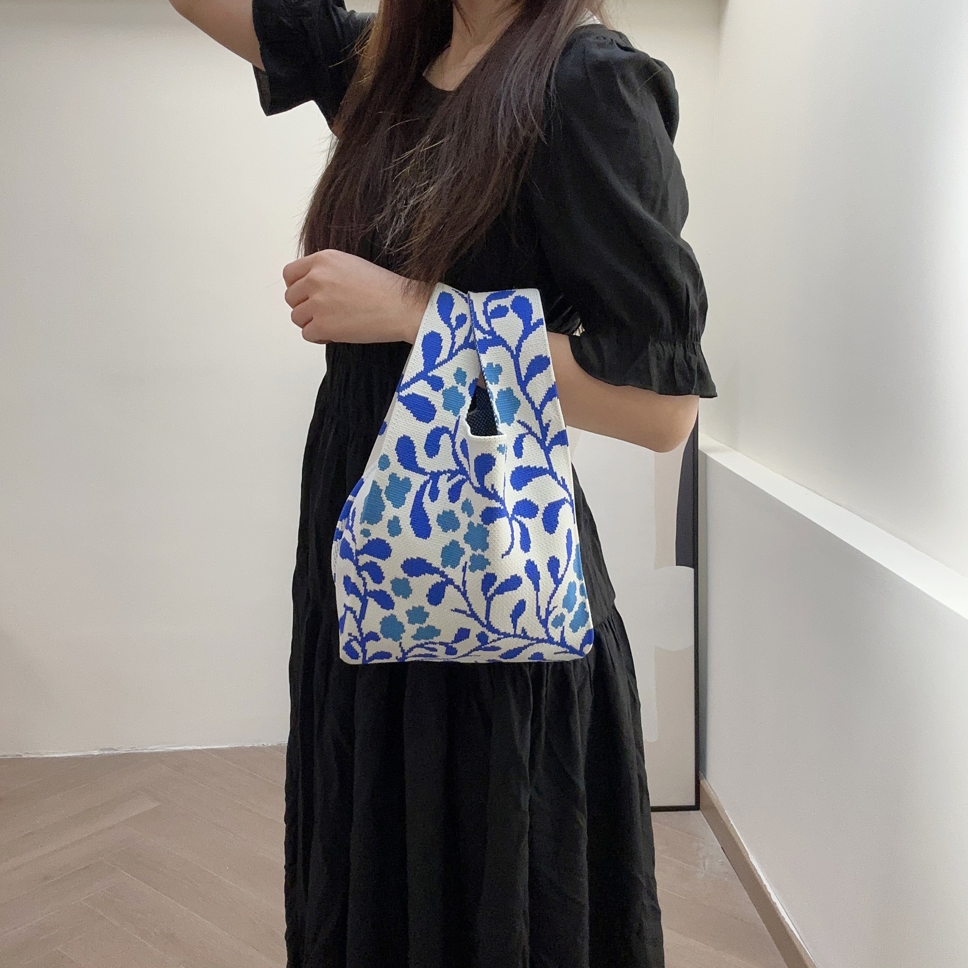 Color: small blue flowers, small purple flower, bag extension strap-Black