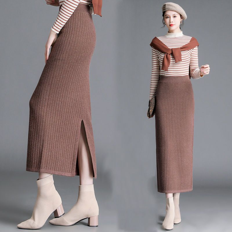 Color: Black [75cm-slit], dark gray [75cm-slit], Brown [75cm-slit], Black [75cm-no slit], dark gray [75cm-no slit]], Brown [75cm-no slit], Black [85cm-no slit], dark gray [85cm-no slit], Brown [85cm-no slit], black [85cm-slit hemline style]], dark gray [85cm slit lower line style], Brown [85cm slit lower line style]]