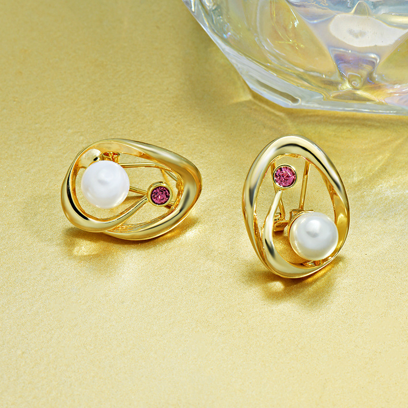 Women's Korean-style High-grade Metallic Pearl Earrings Anti-allergy Sterling Silver Needle