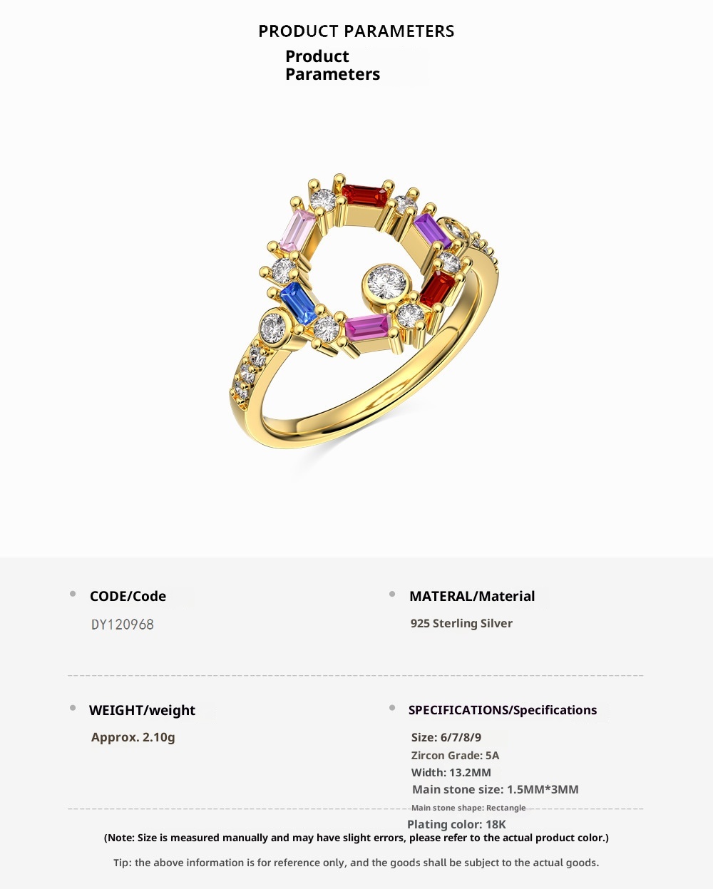 Color: Platinum White Diamond DY120968-S-W-WH, gold colorful crystal DY120968-S-G-CS