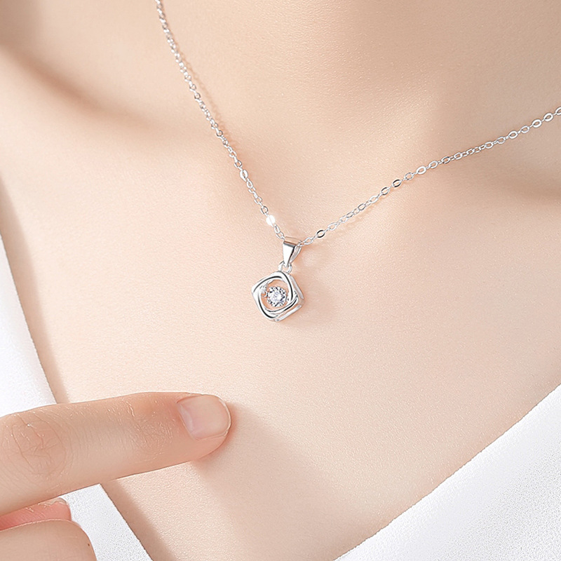 Womens Korean-style Minimalist S925 Sterling Silver Dainty Four-Leaf Clover Necklace