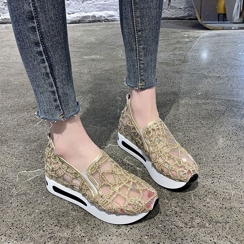 Women's Lace Mesh Casual Inner Height Increasing Shoes
