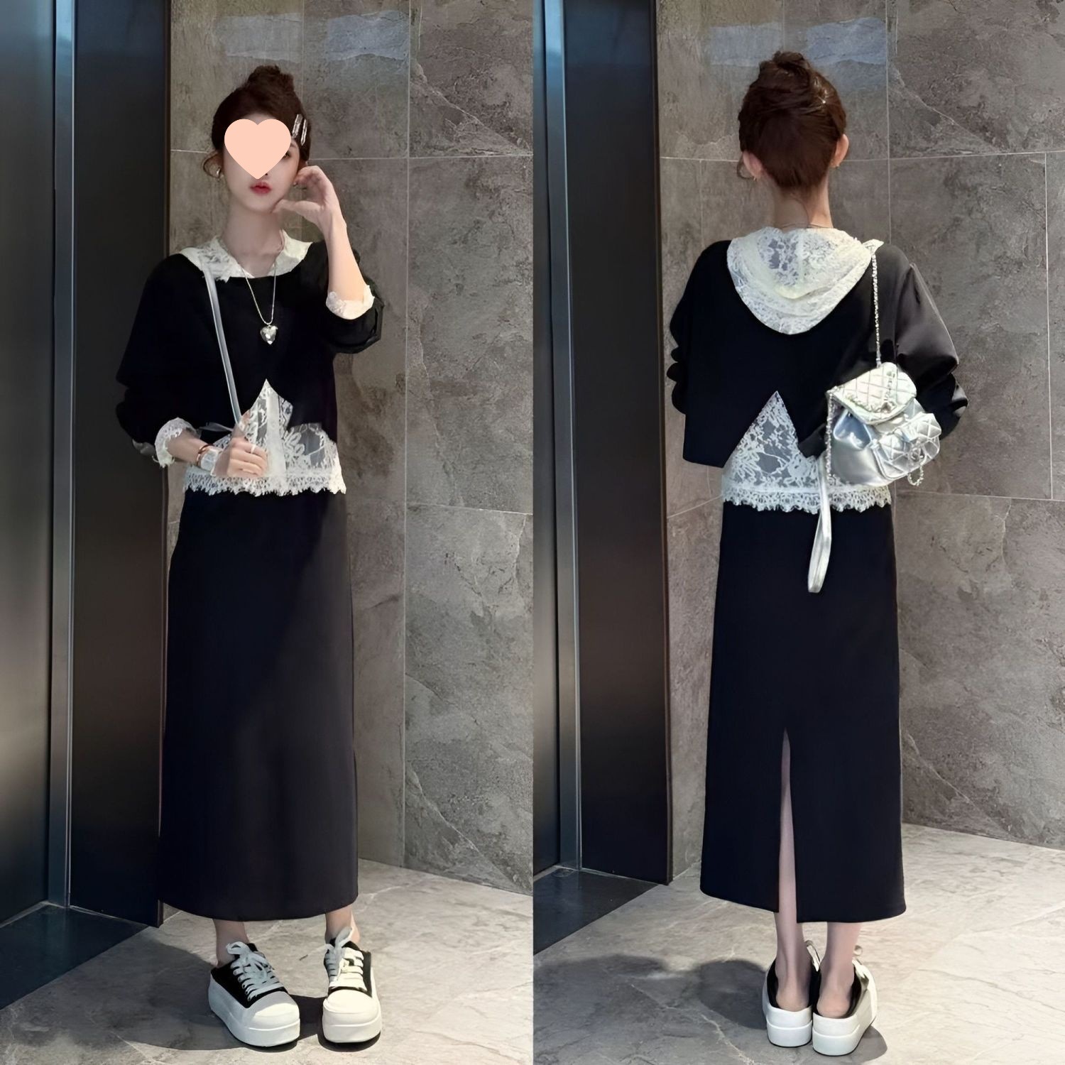 Trendy elements: Lace, solid color, patchwork