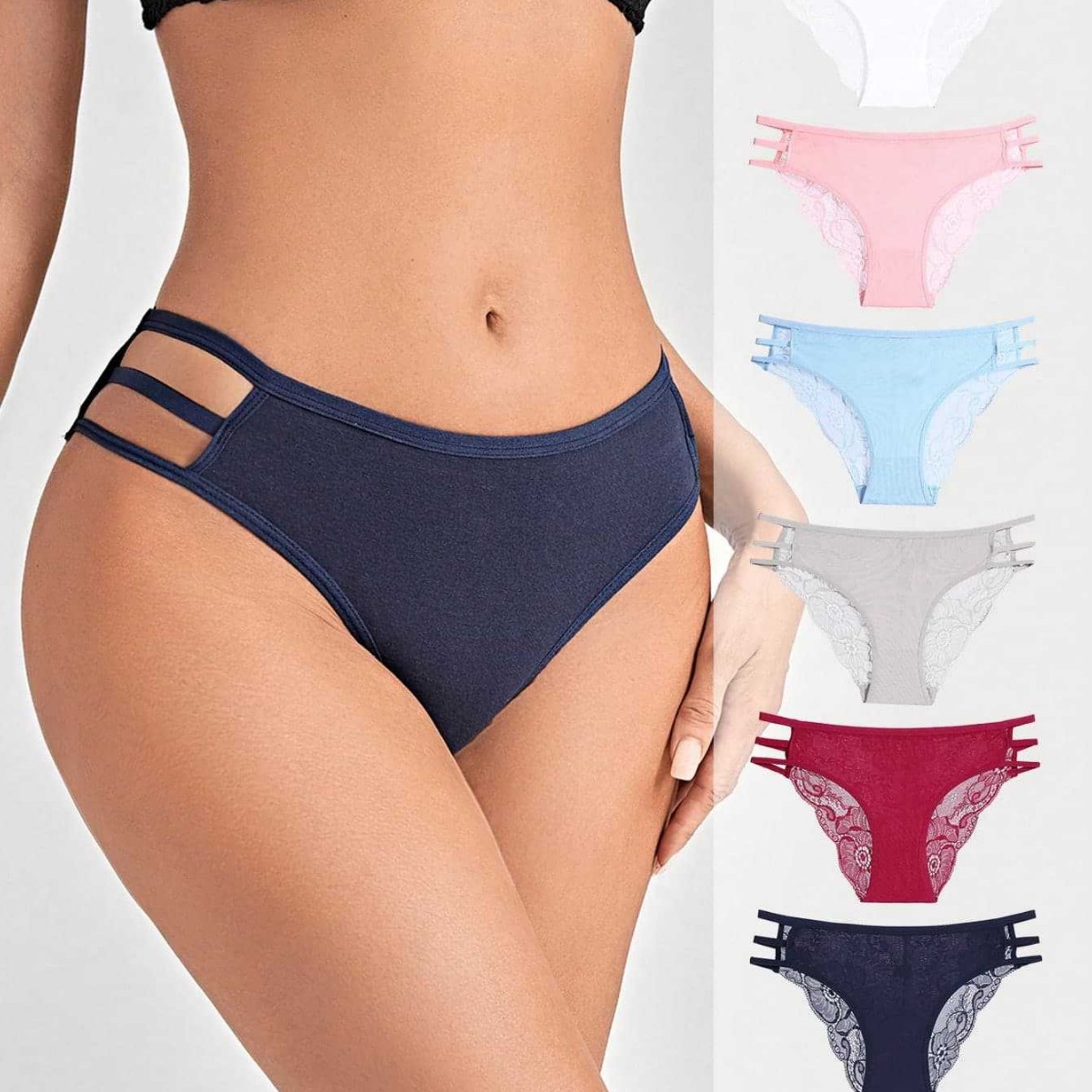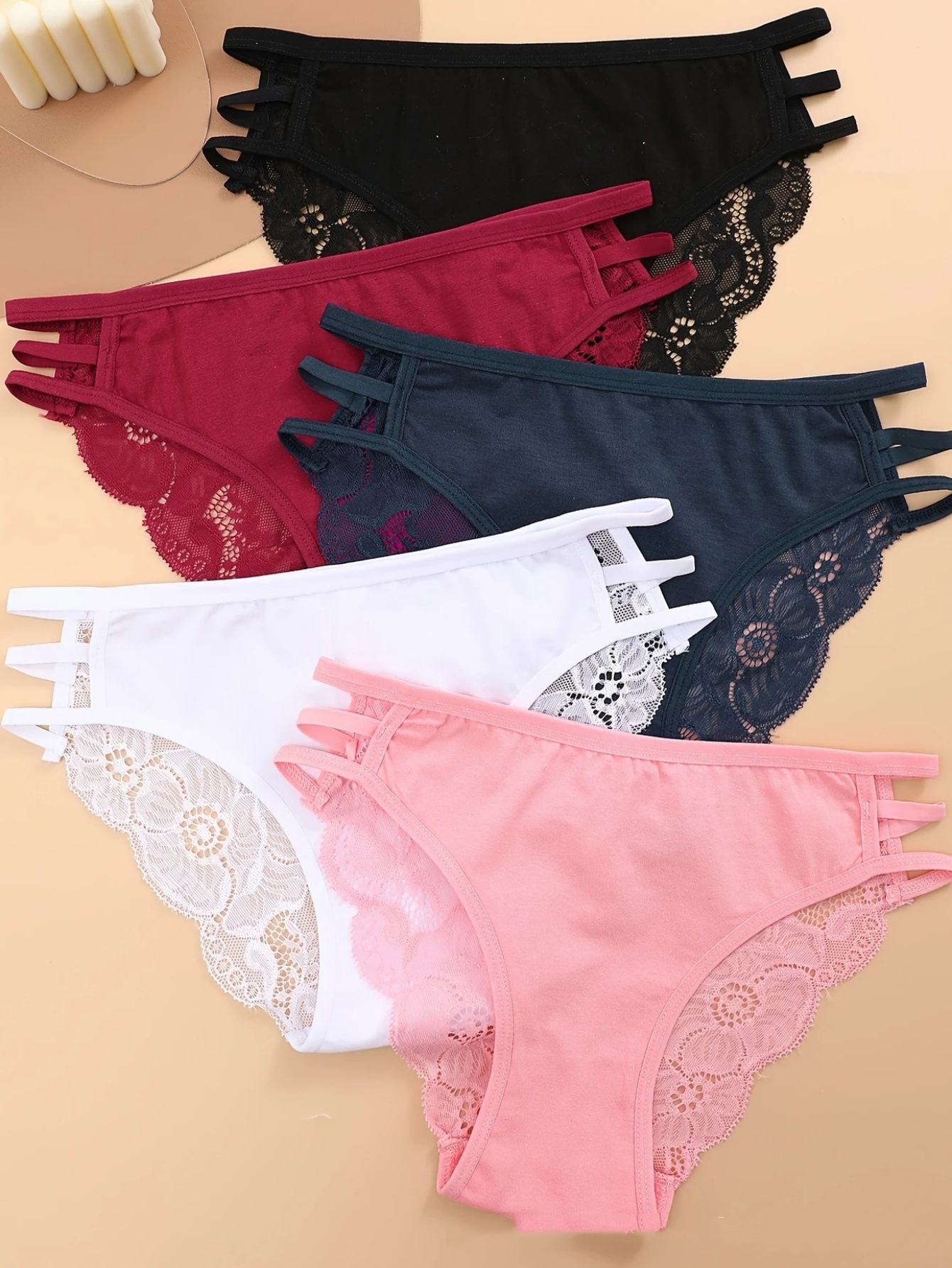 Women's Lace-trimmed Patchwork Thong Bottoms