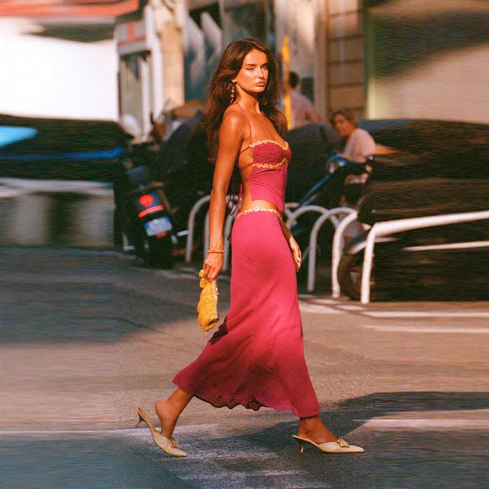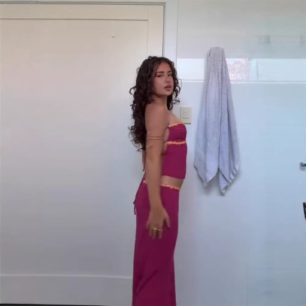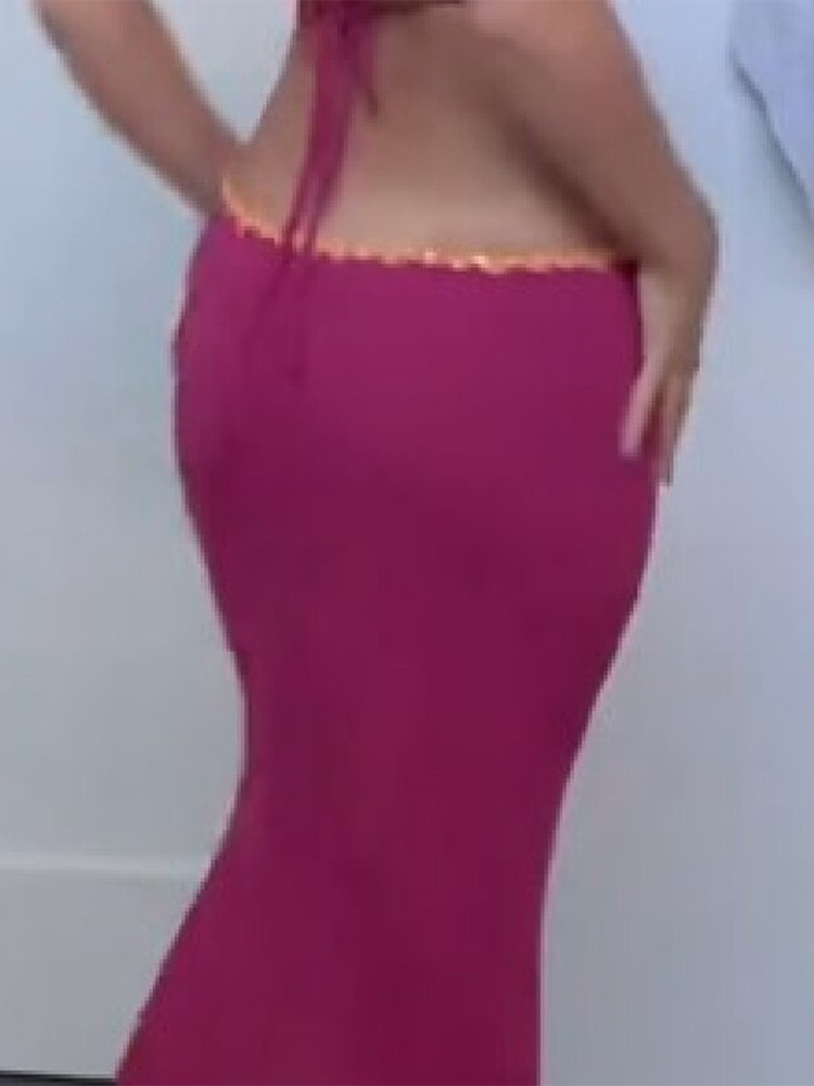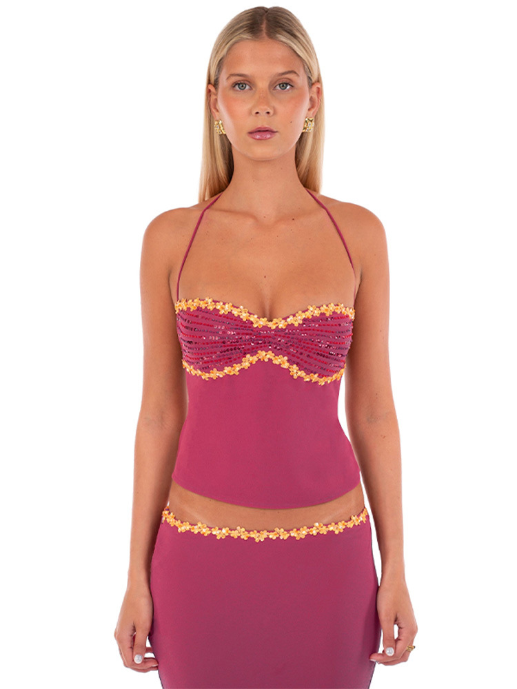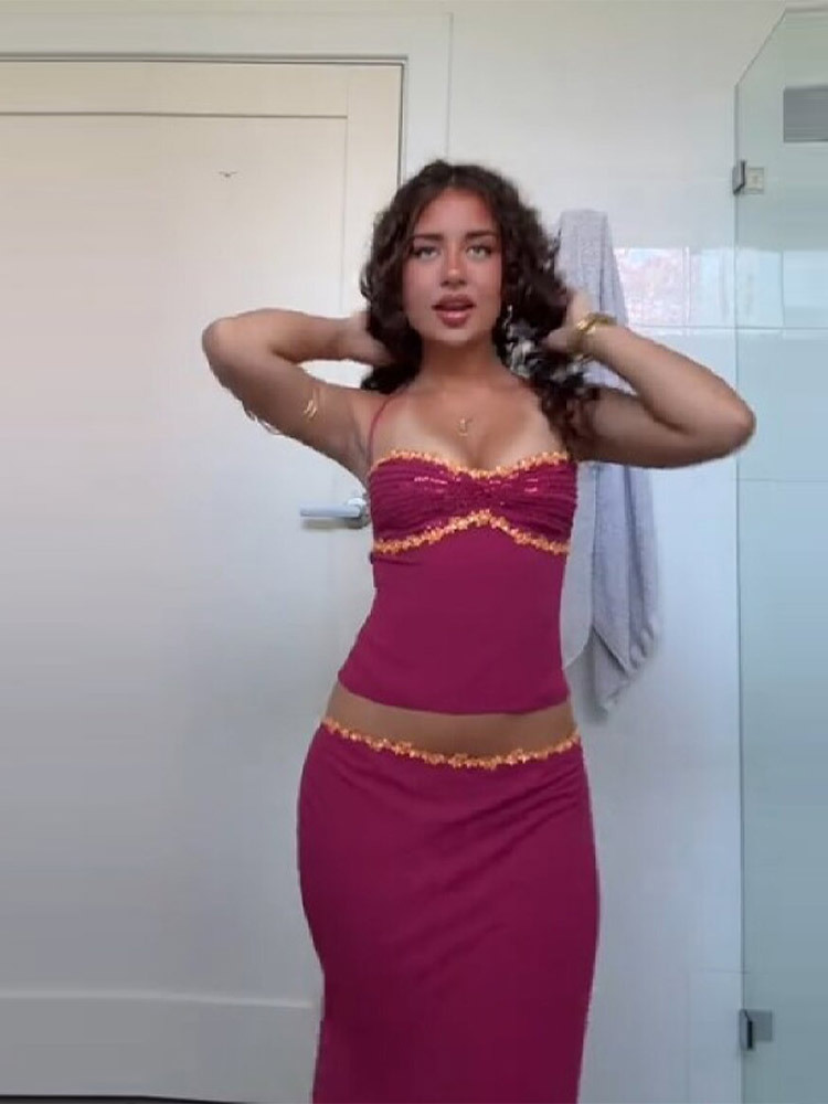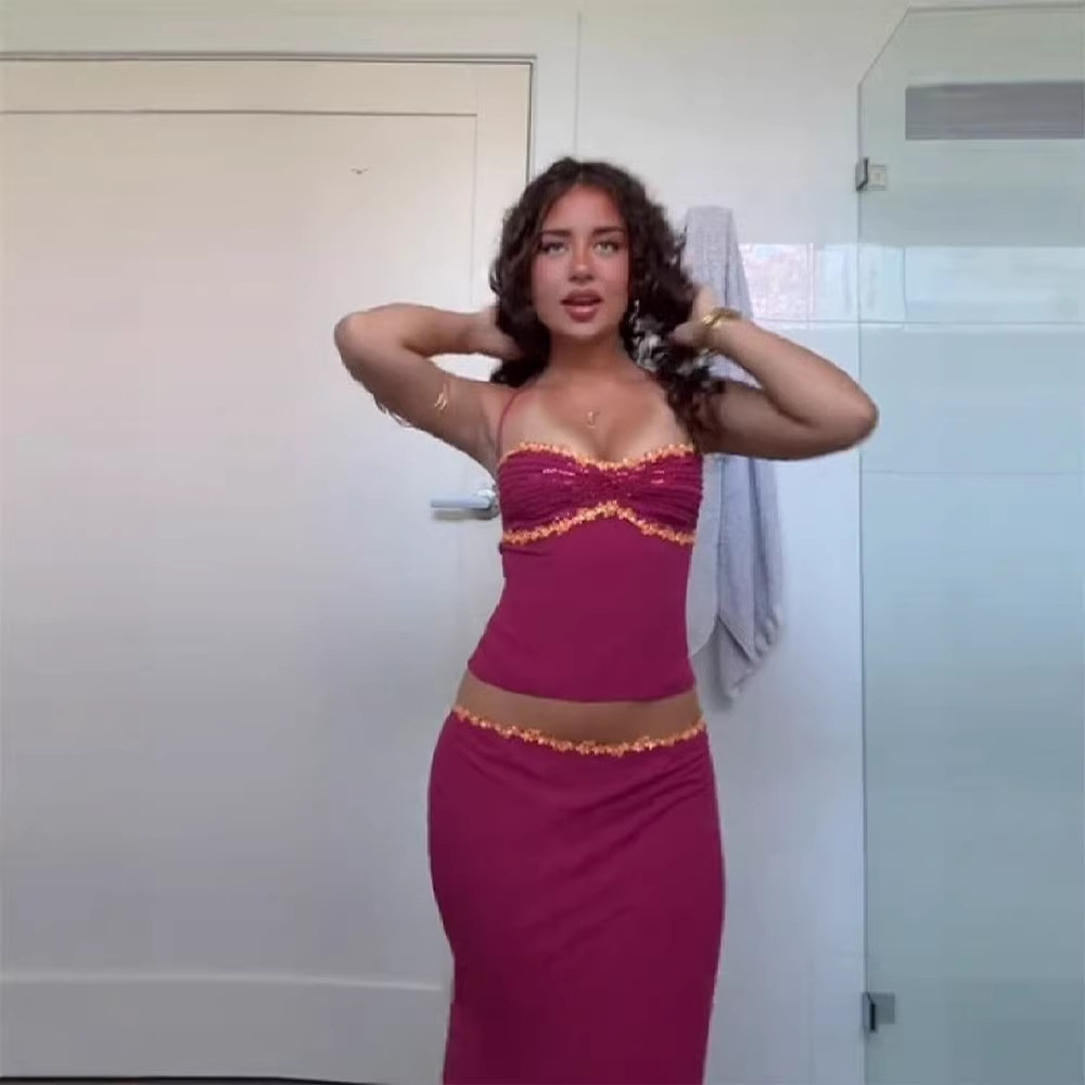 Color: Wine red — top, wine red — skirt, wine red — suit