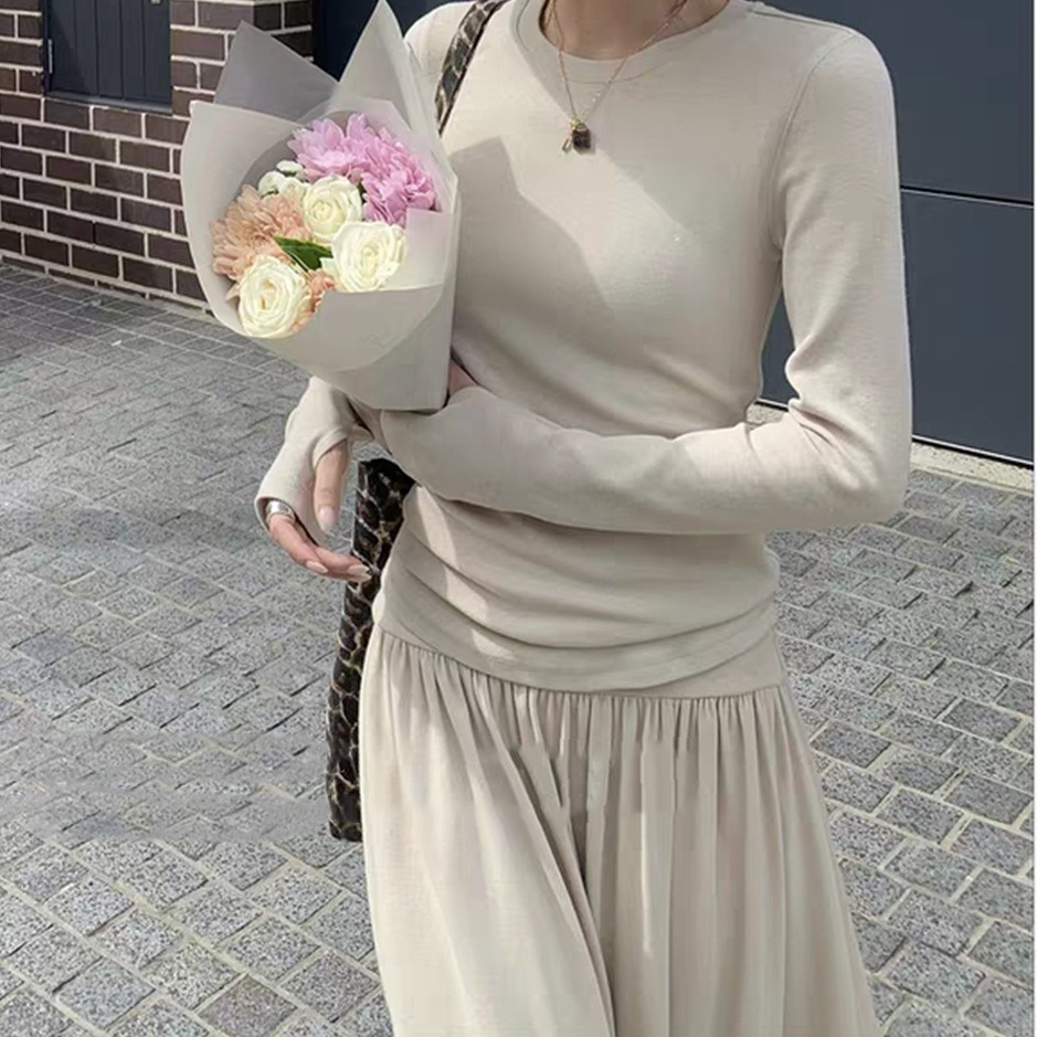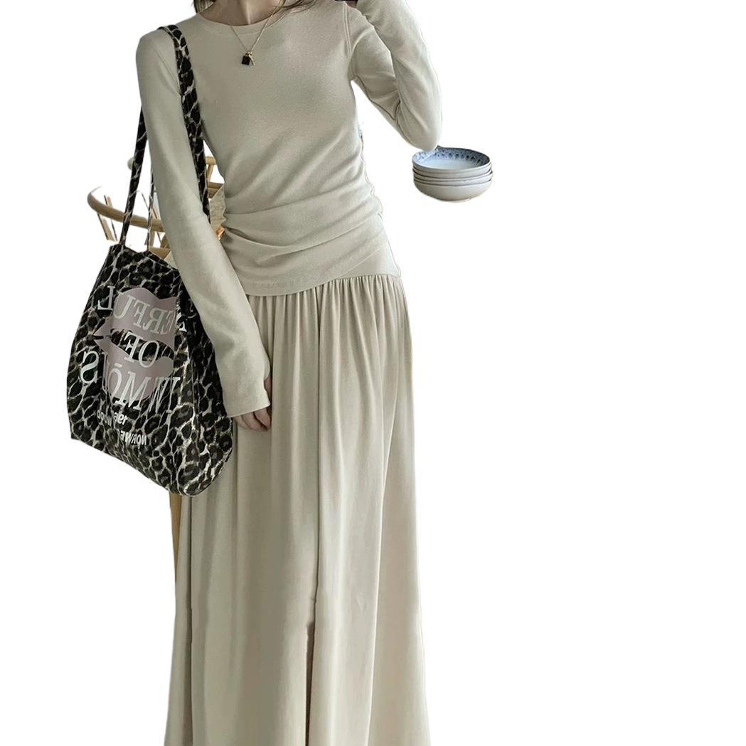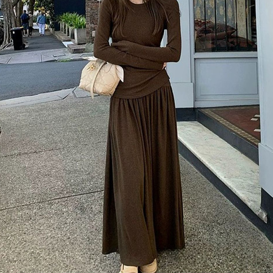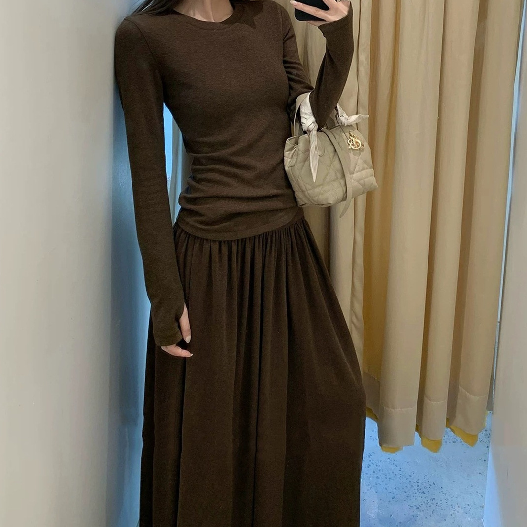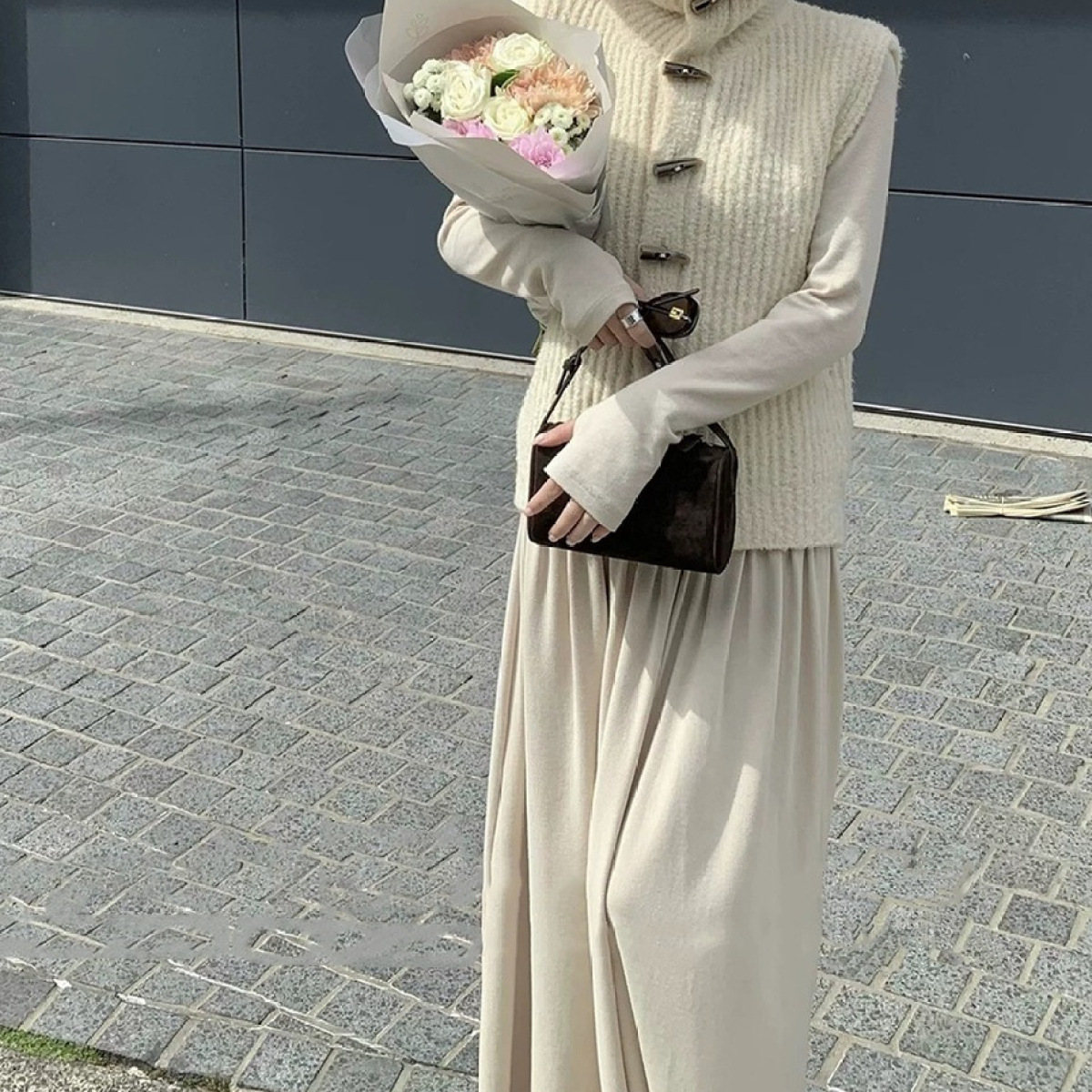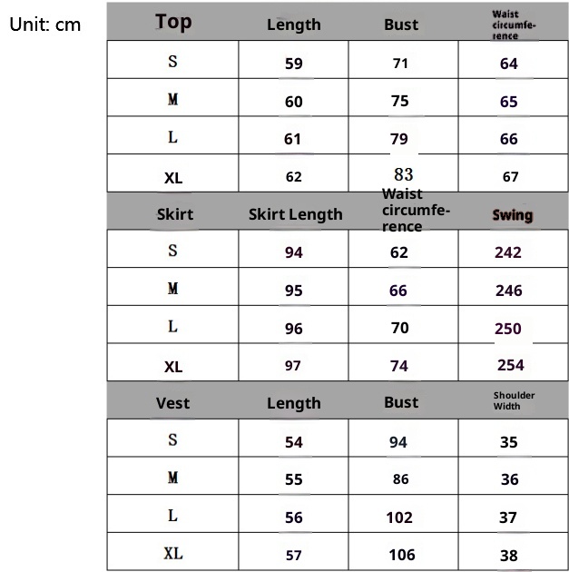 Color: Cream apricot T-shirt, brown T-shirt, coffee vest, light apricot vest, cream apricot skirt, brown skirt