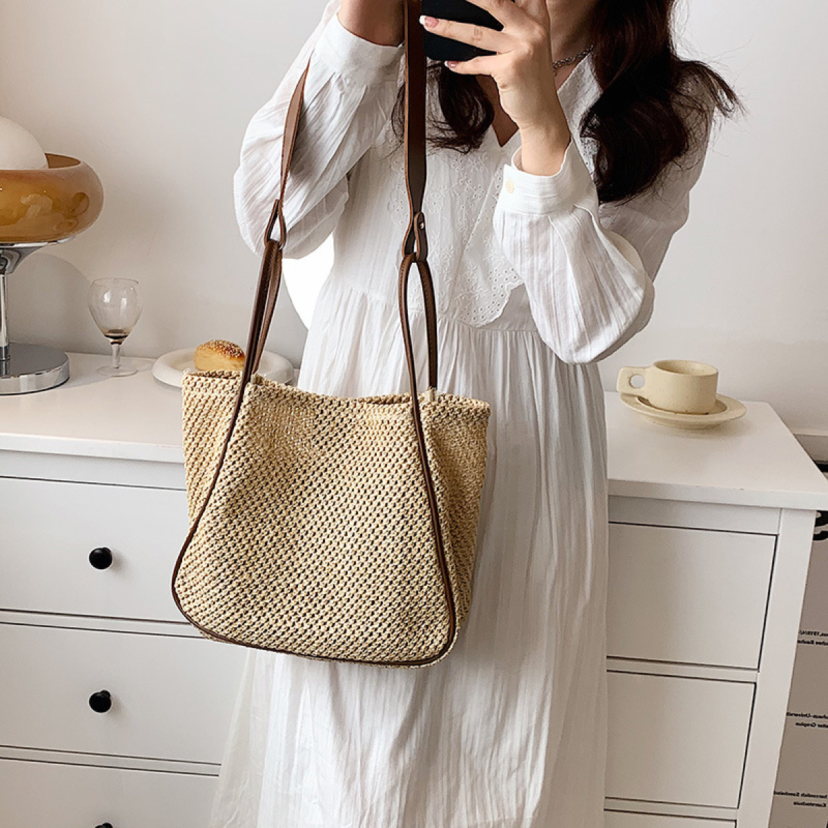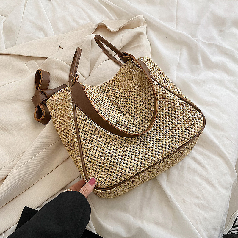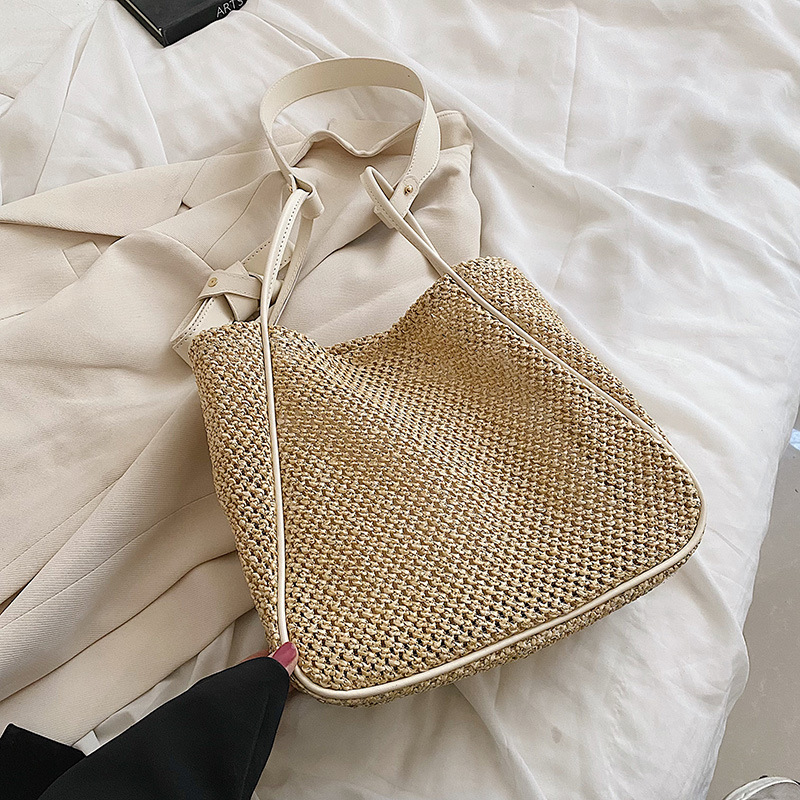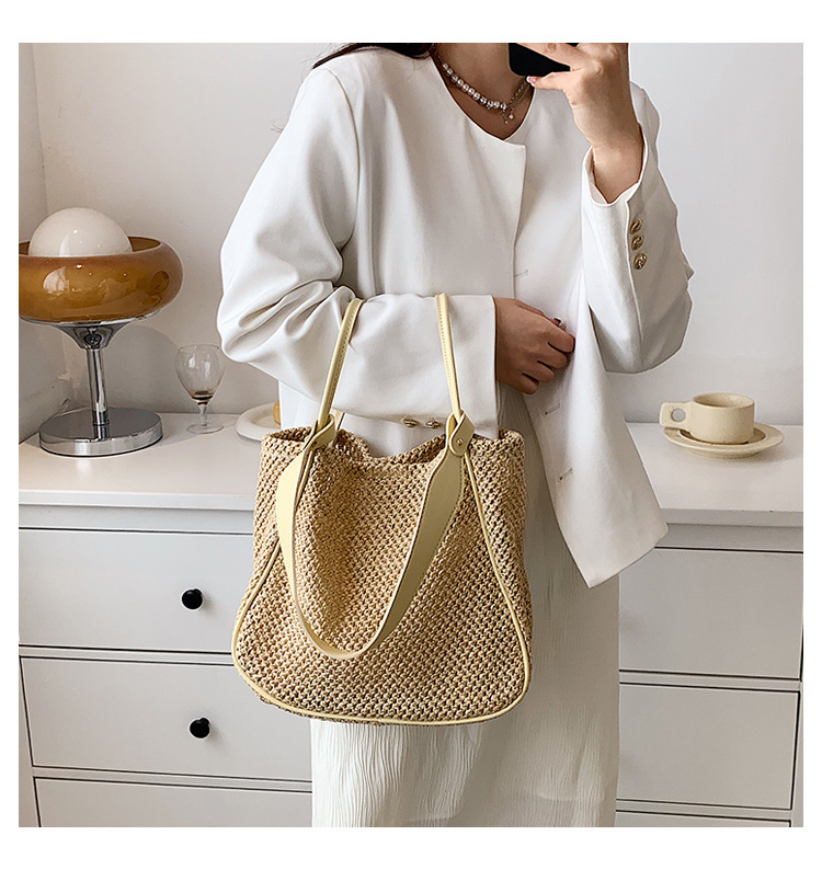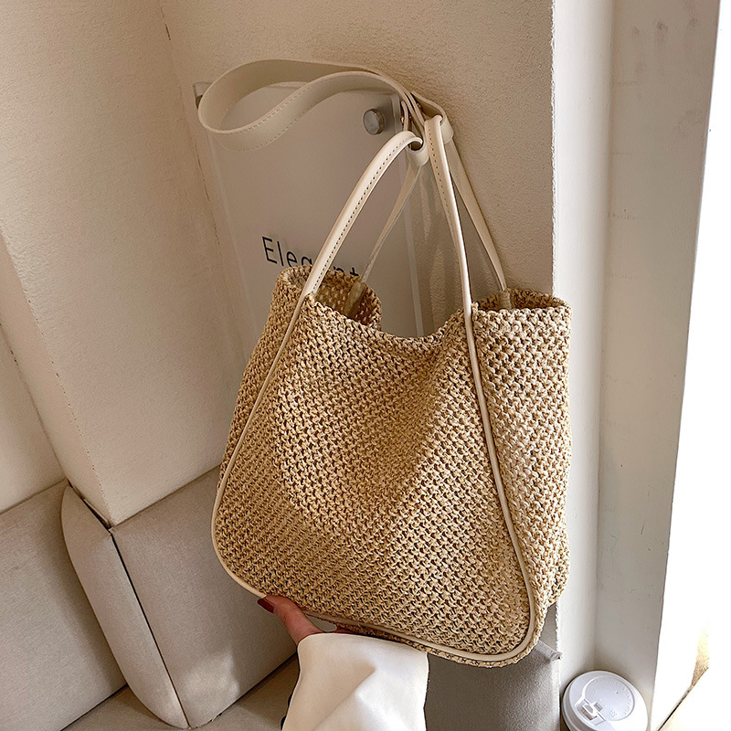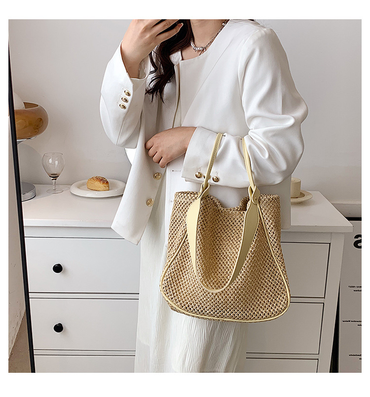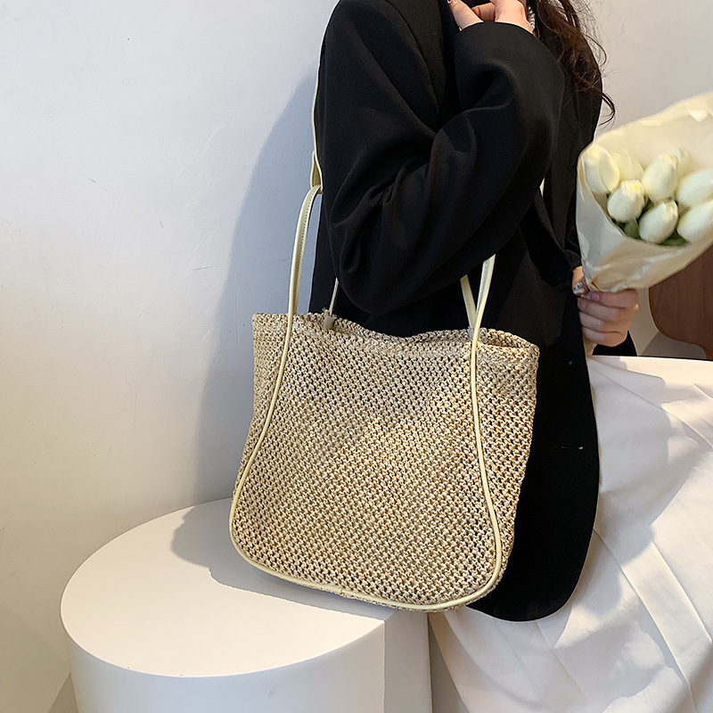 Women's Large Capacity Hand-held One-shoulder Woven Straw Bag