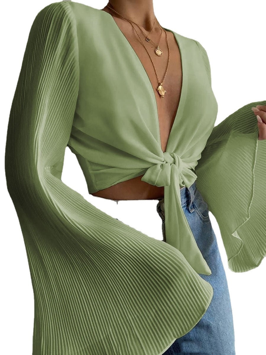 Women's Large Flared Sleeve Solid Slim Top