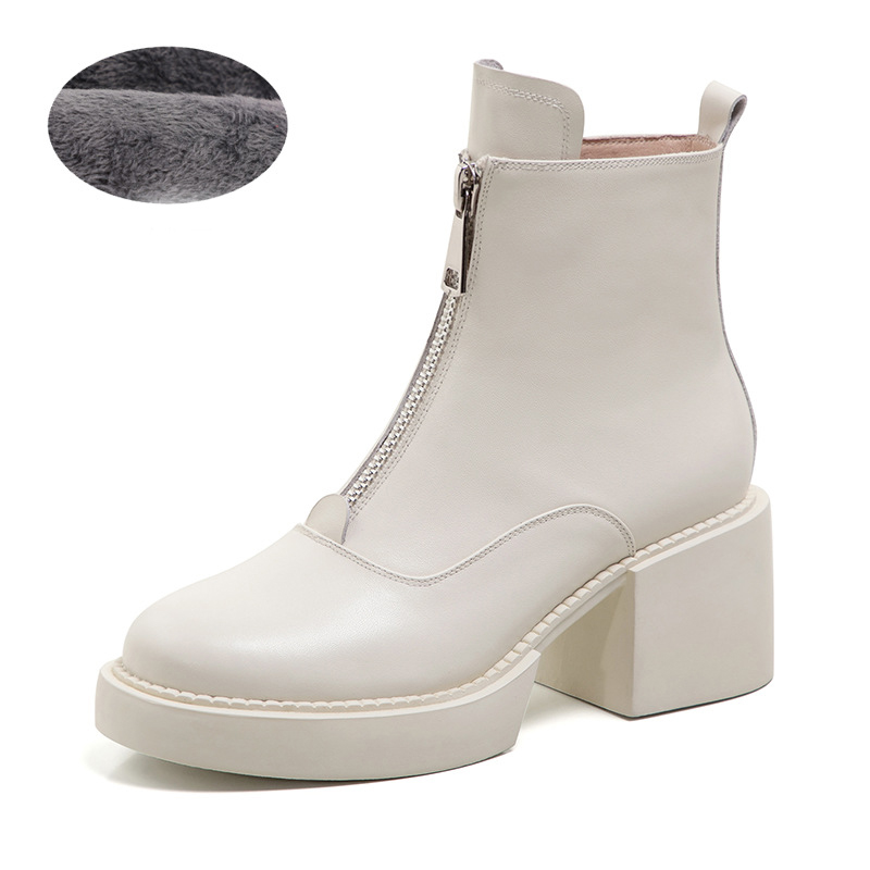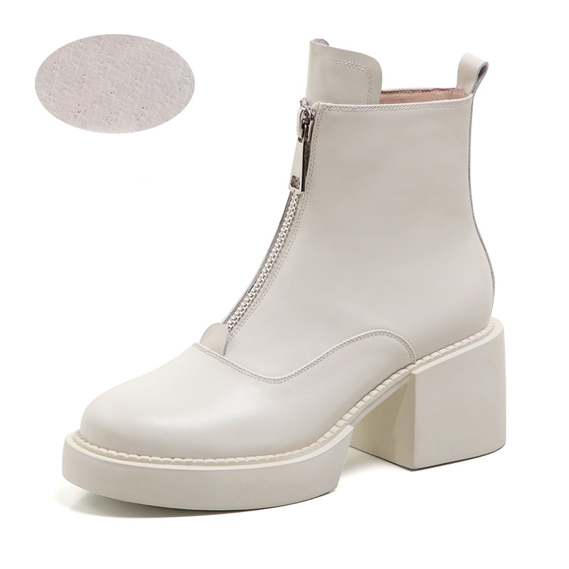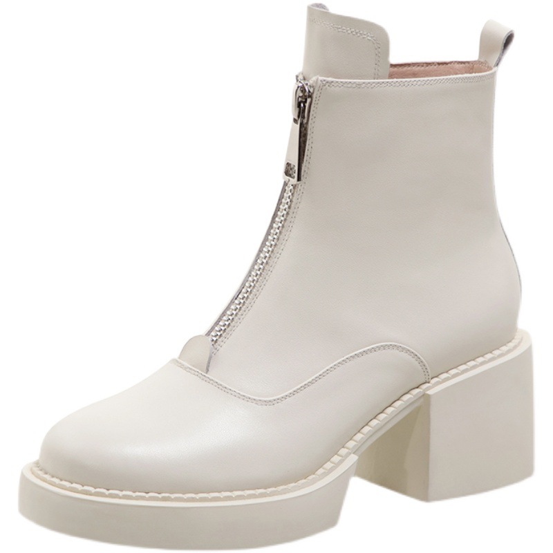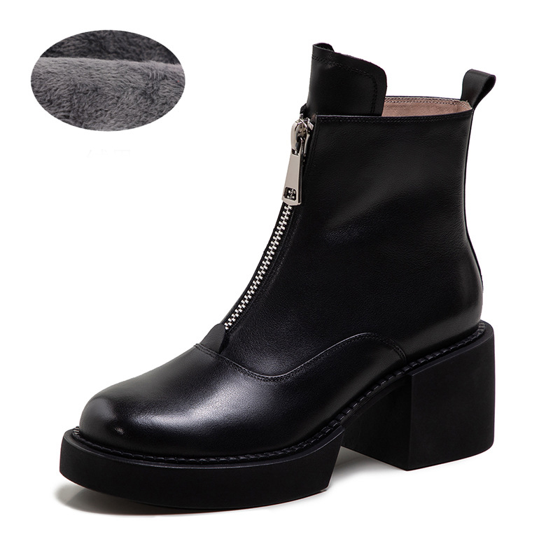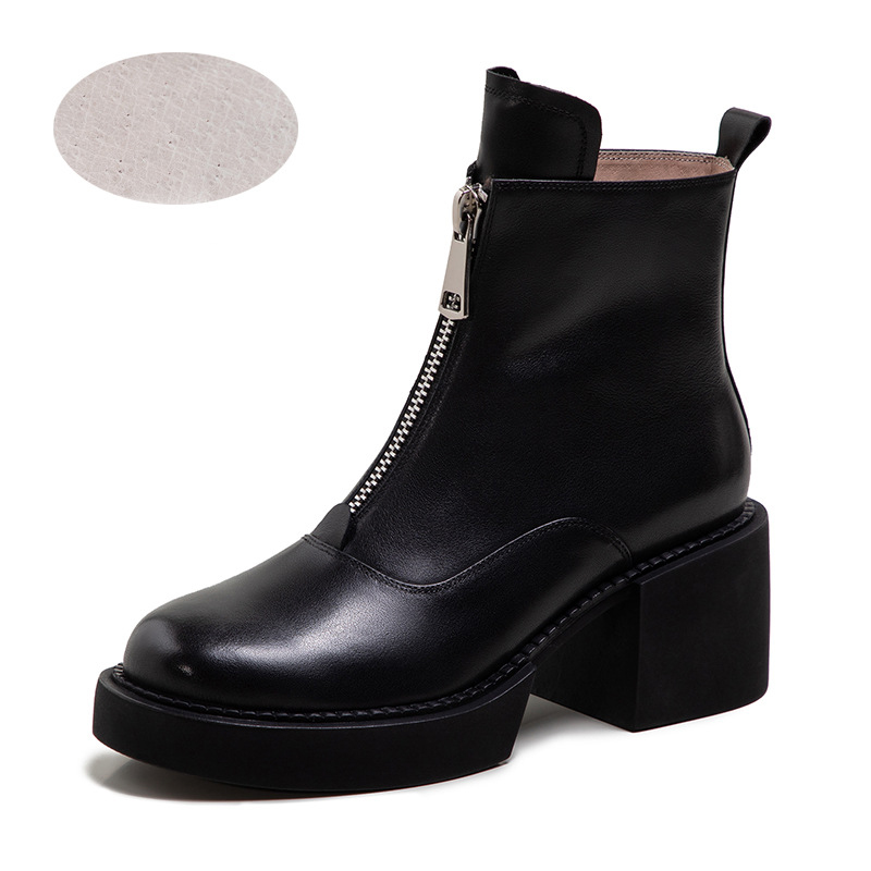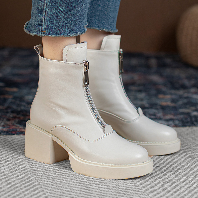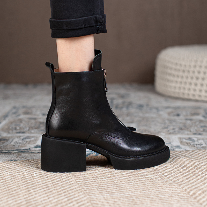 Women's Leather Platform Thick Heel Ankle Boots