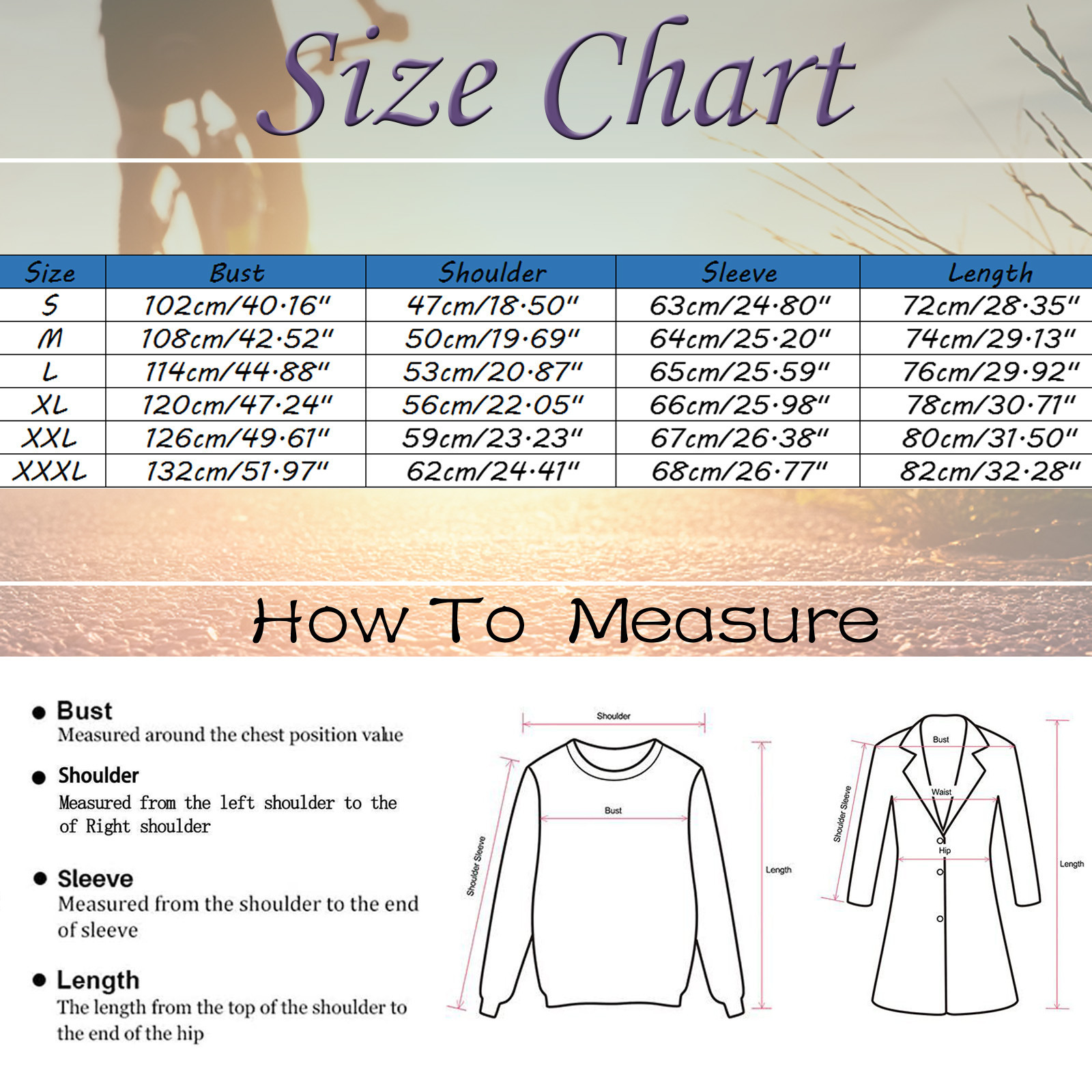 Sizes: S, M, L, XL, XXL, XXXL
