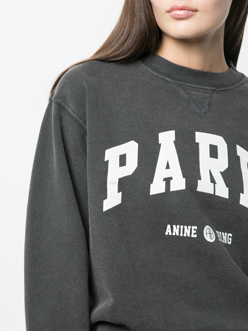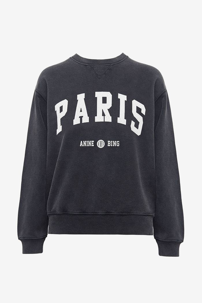 Women's Letter PARIS Black And Gray Round Neck Cotton Sweater