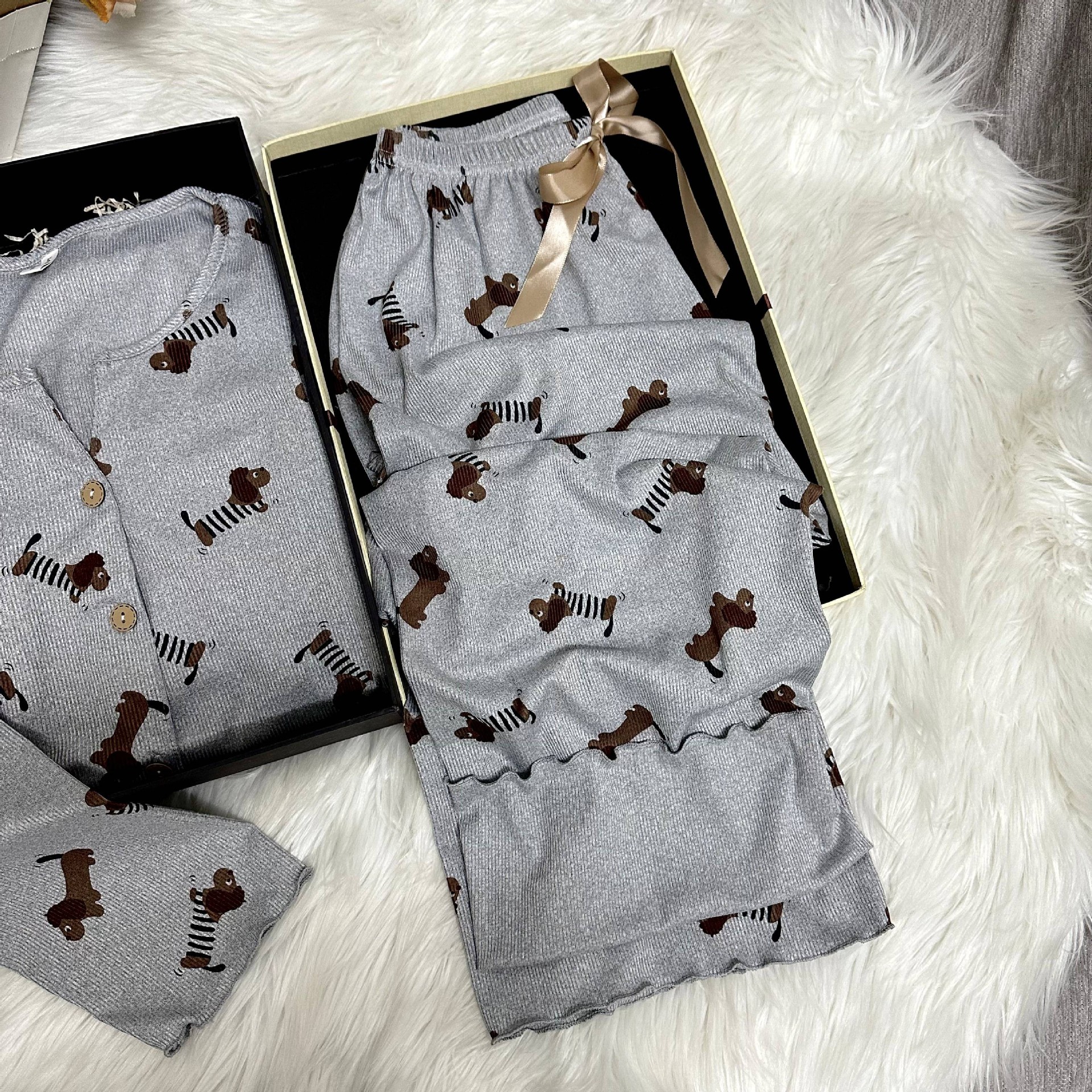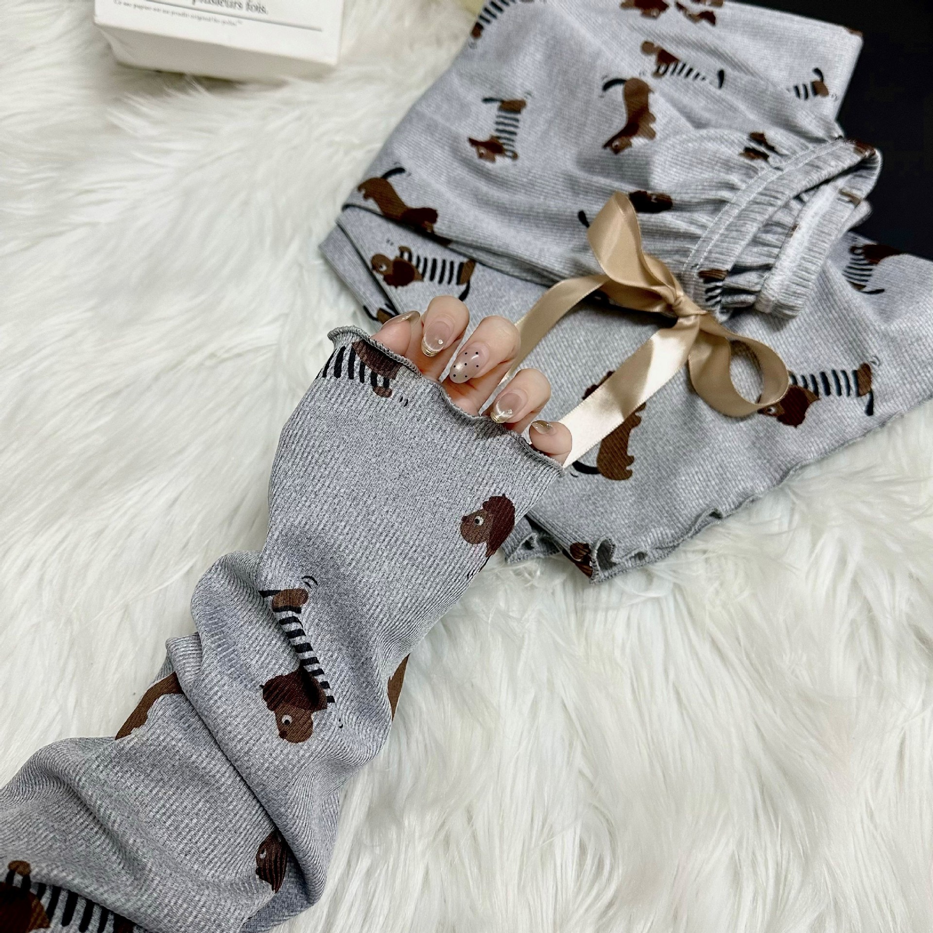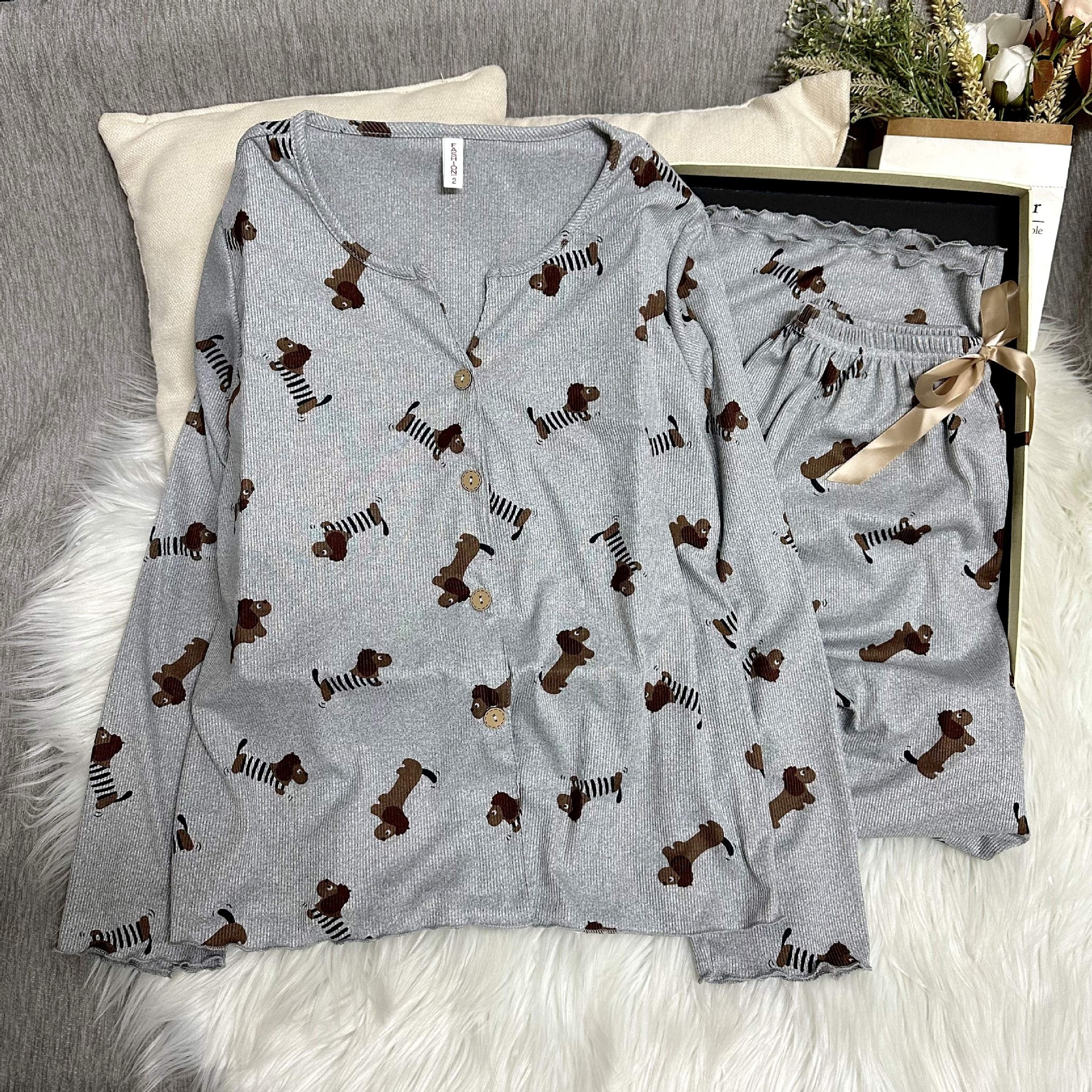 Womens Lightweight Autumn V-neck Ribbed Pajamas