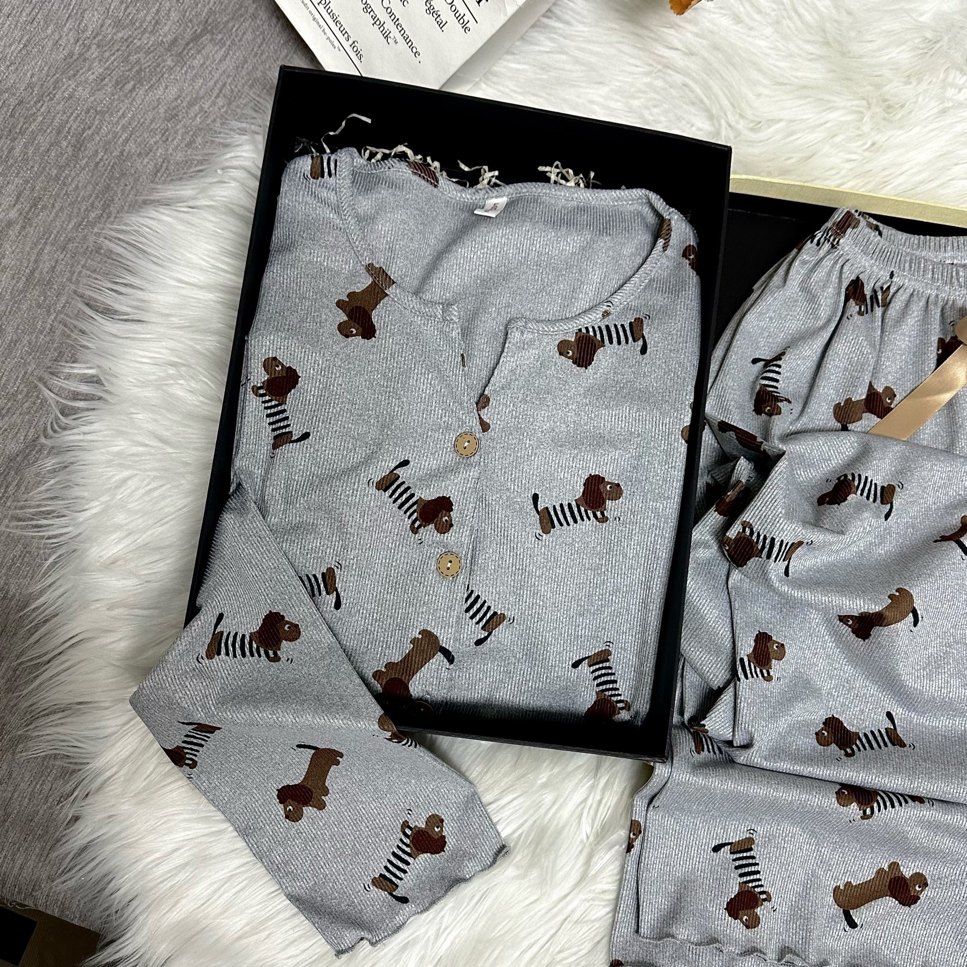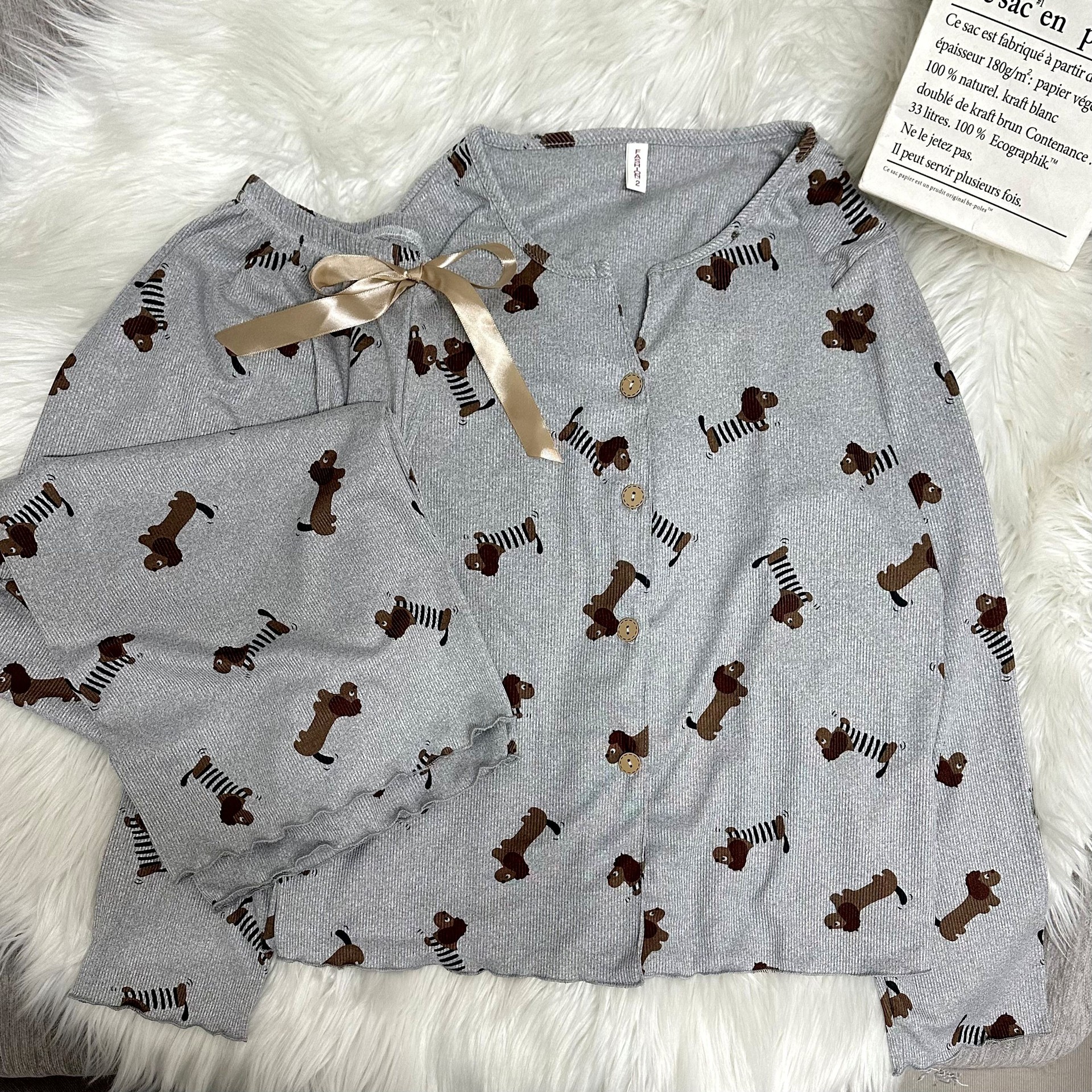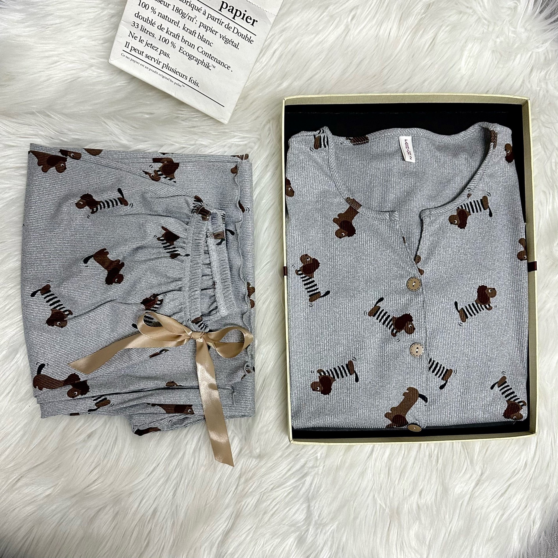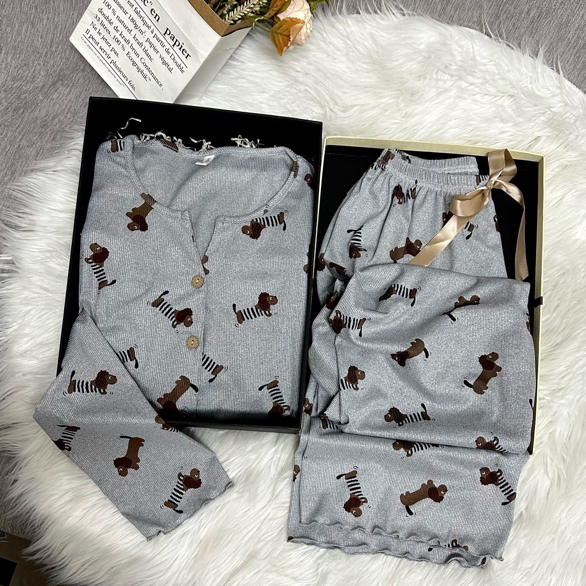 Womens Lightweight Autumn V-neck Ribbed Pajamas