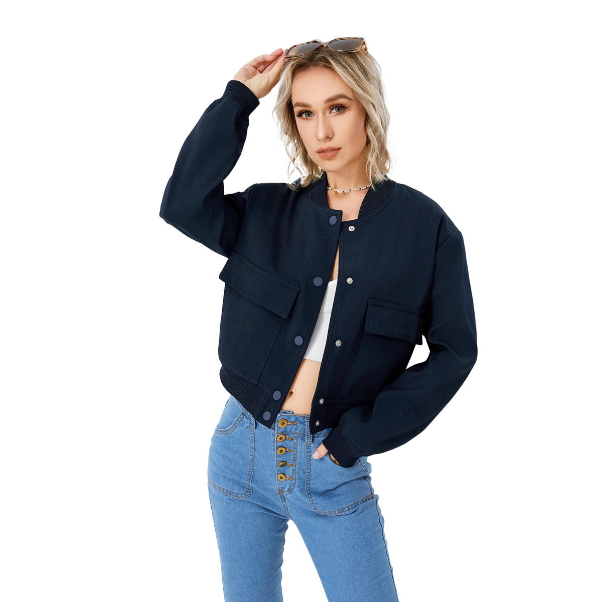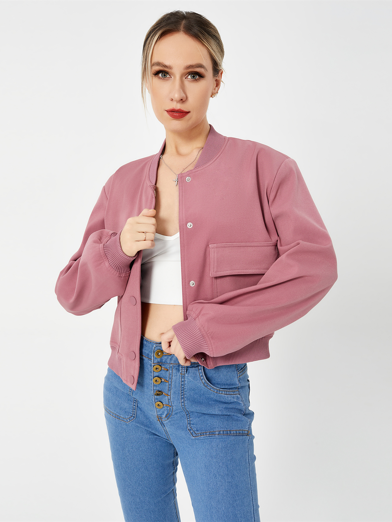Women's Lightweight Cropped Bomber Jacket Casual Long Sleeve Varsity Jacket With Pocket Fashion Y2k Jacket Streetwear
