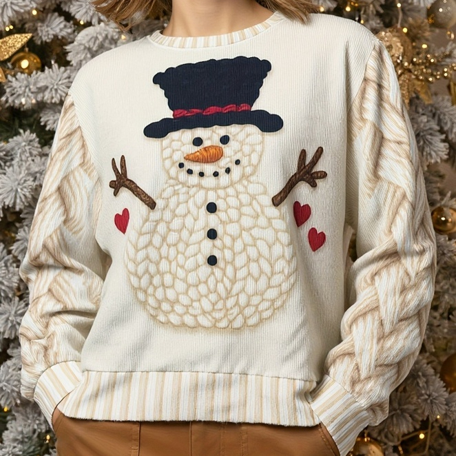 Women's Little Snowman Christmas Dress Knitted Sweater Snowflake