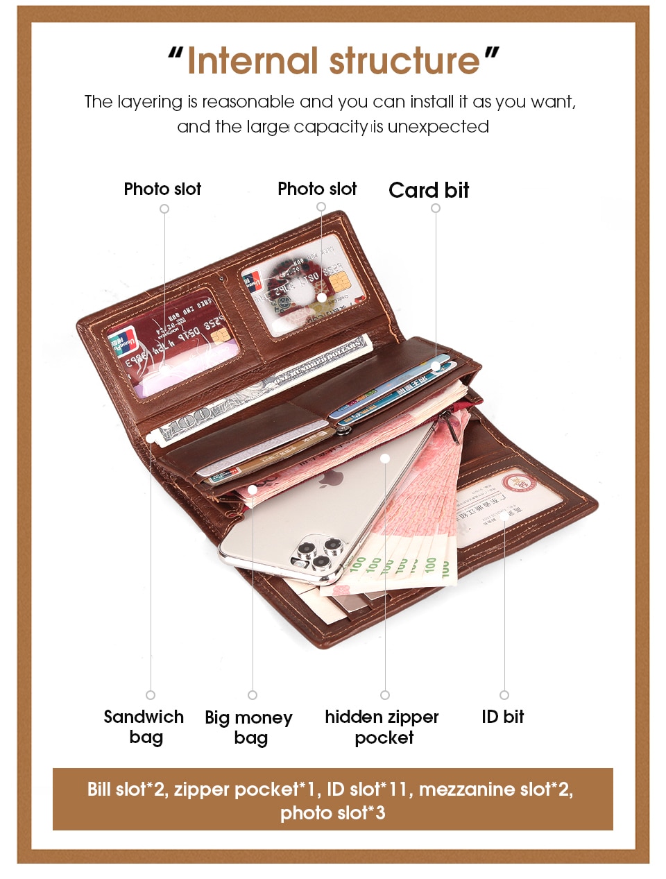 Internal structure: Bill holder, photo position, change position, zipper pocket