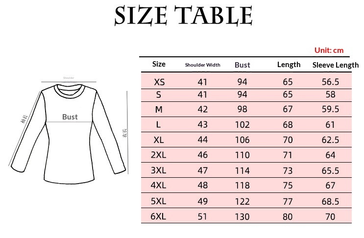 Sizes: S, M, L, XL, 2XL, 3XL, 4XL, 5XL