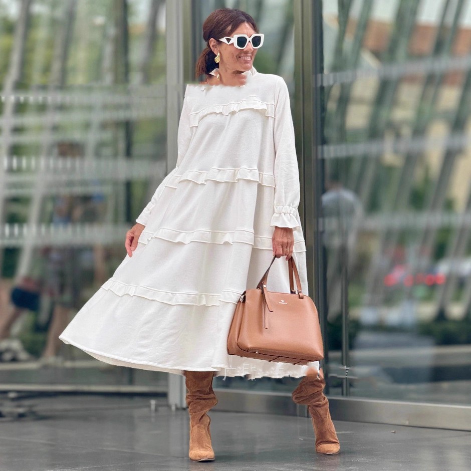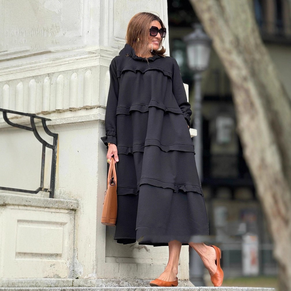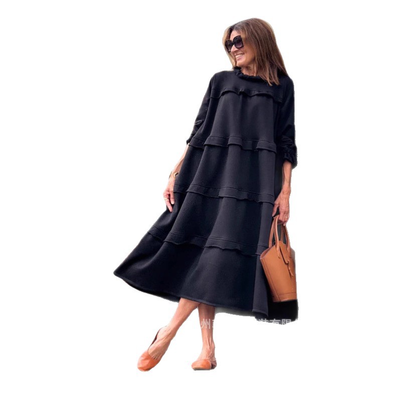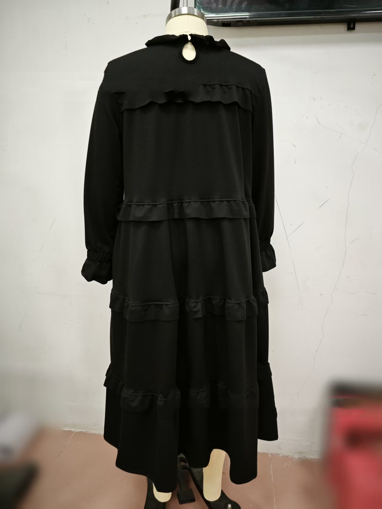 Women's Long Sleeve Patchwork Round Neck Ruffles Dress