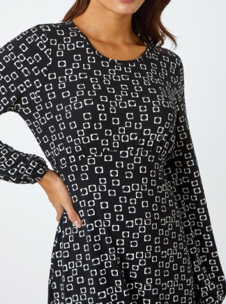 Women's Long-sleeved Casual Dress Square Pattern Skirt