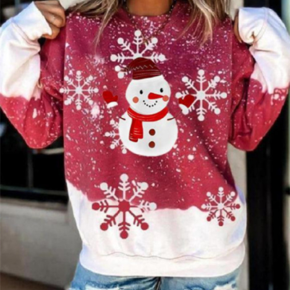 Women's Long-sleeved T-shirt Christmas Snowman Printed Design