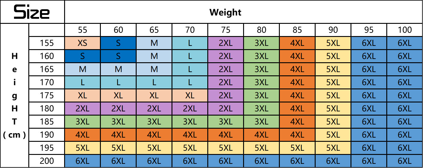 Size: XS,S,M,L,XL,XXL,3XL,4XL,5XL,6XL