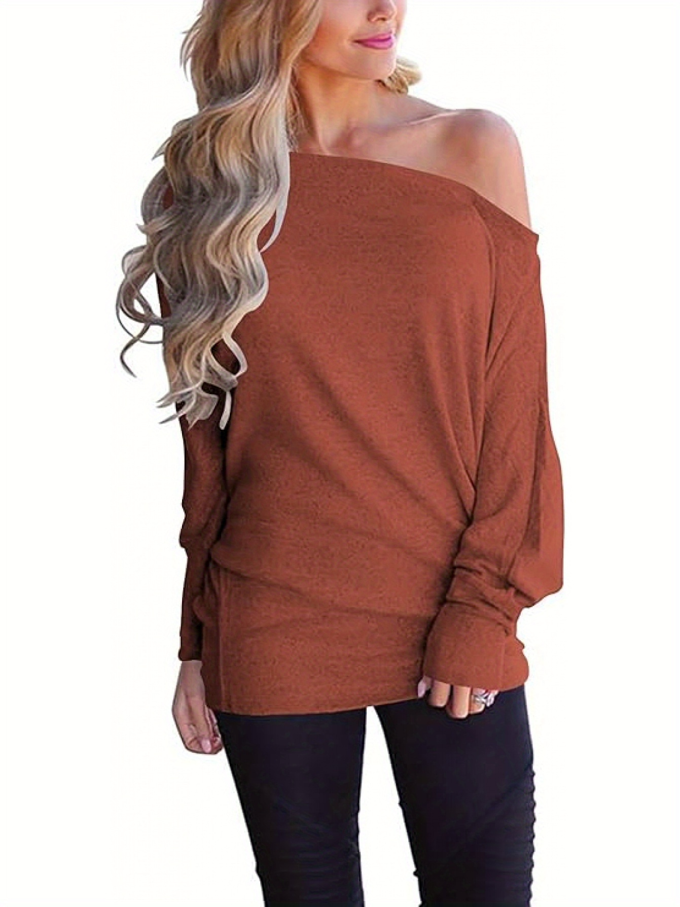 Women's Long-Sleeved T-Shirt Outer Solid Color Top