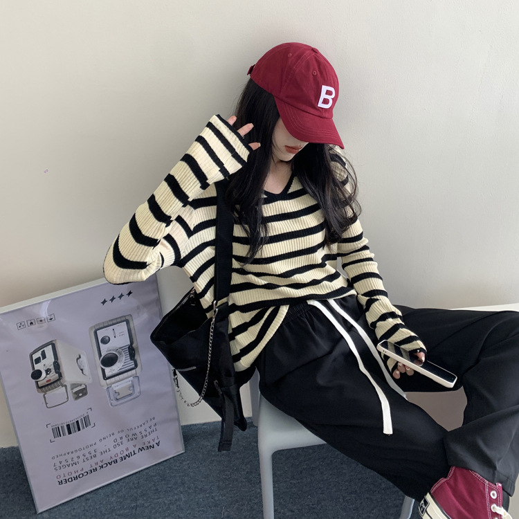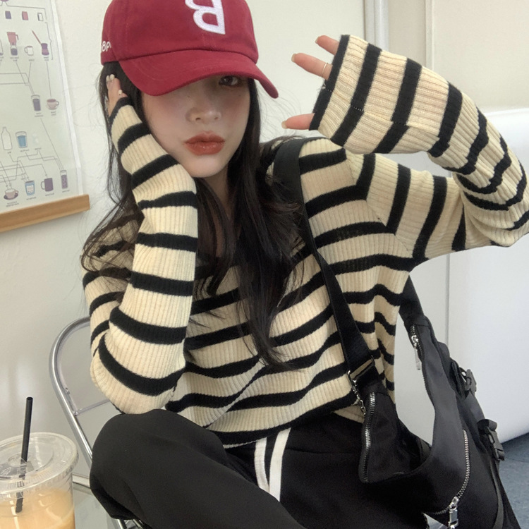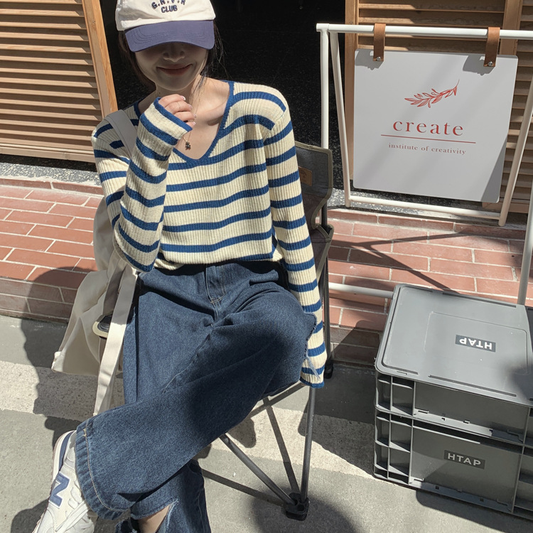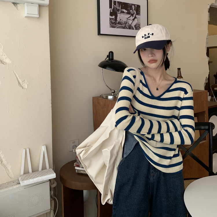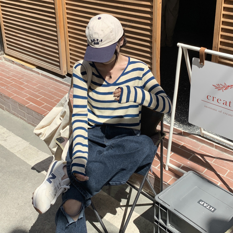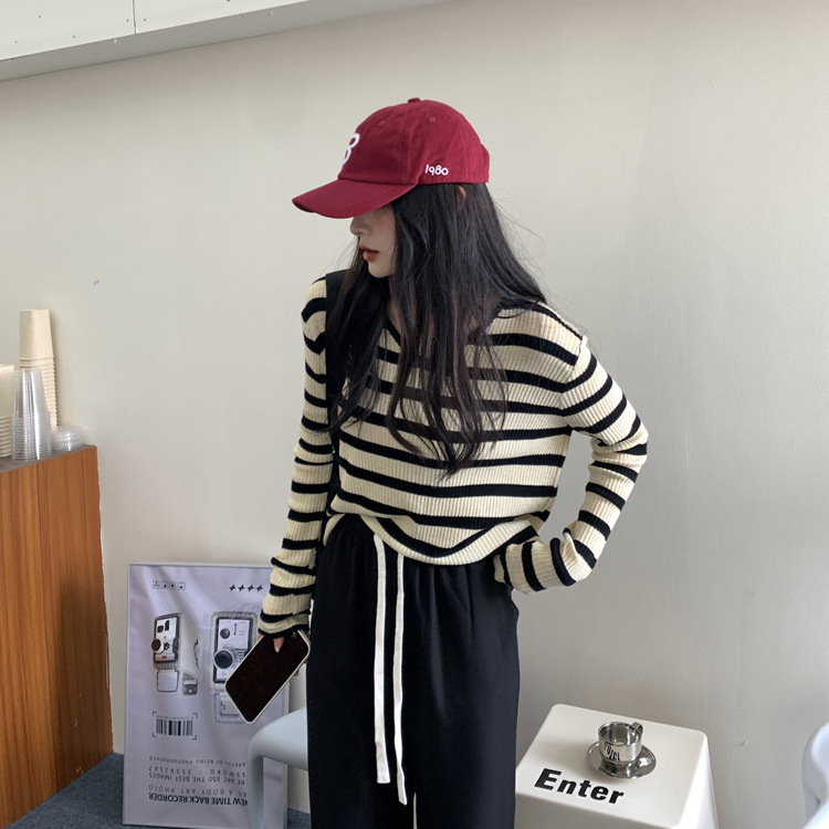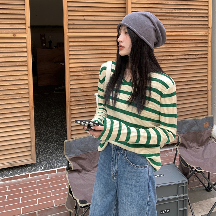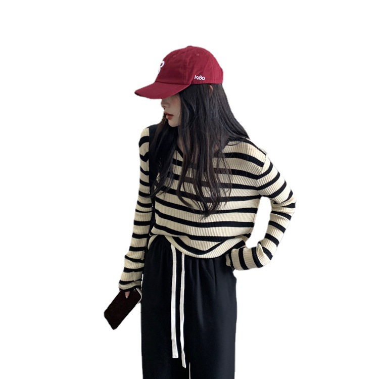 Women's Long-sleeved T-shirt Sunken Stripe Threaded Undershirt Top